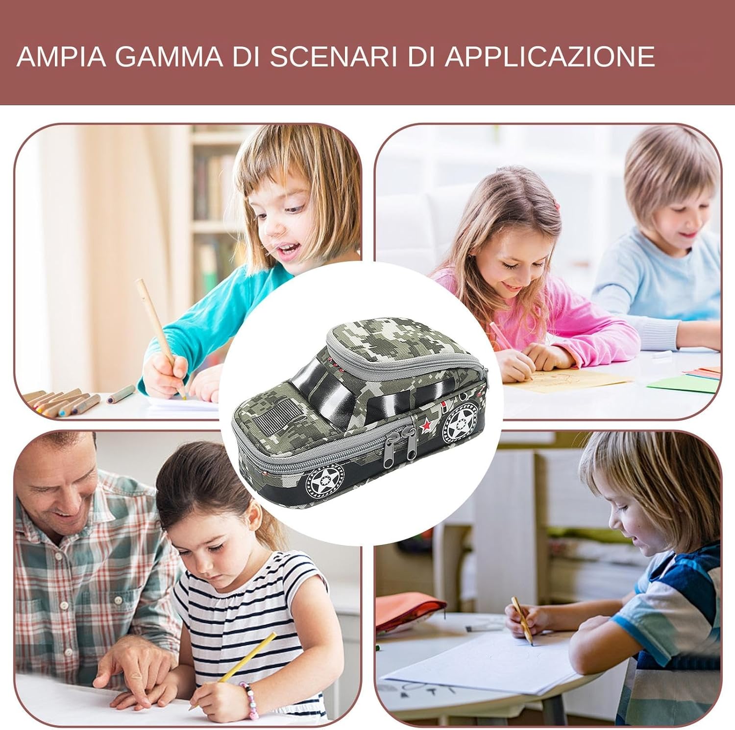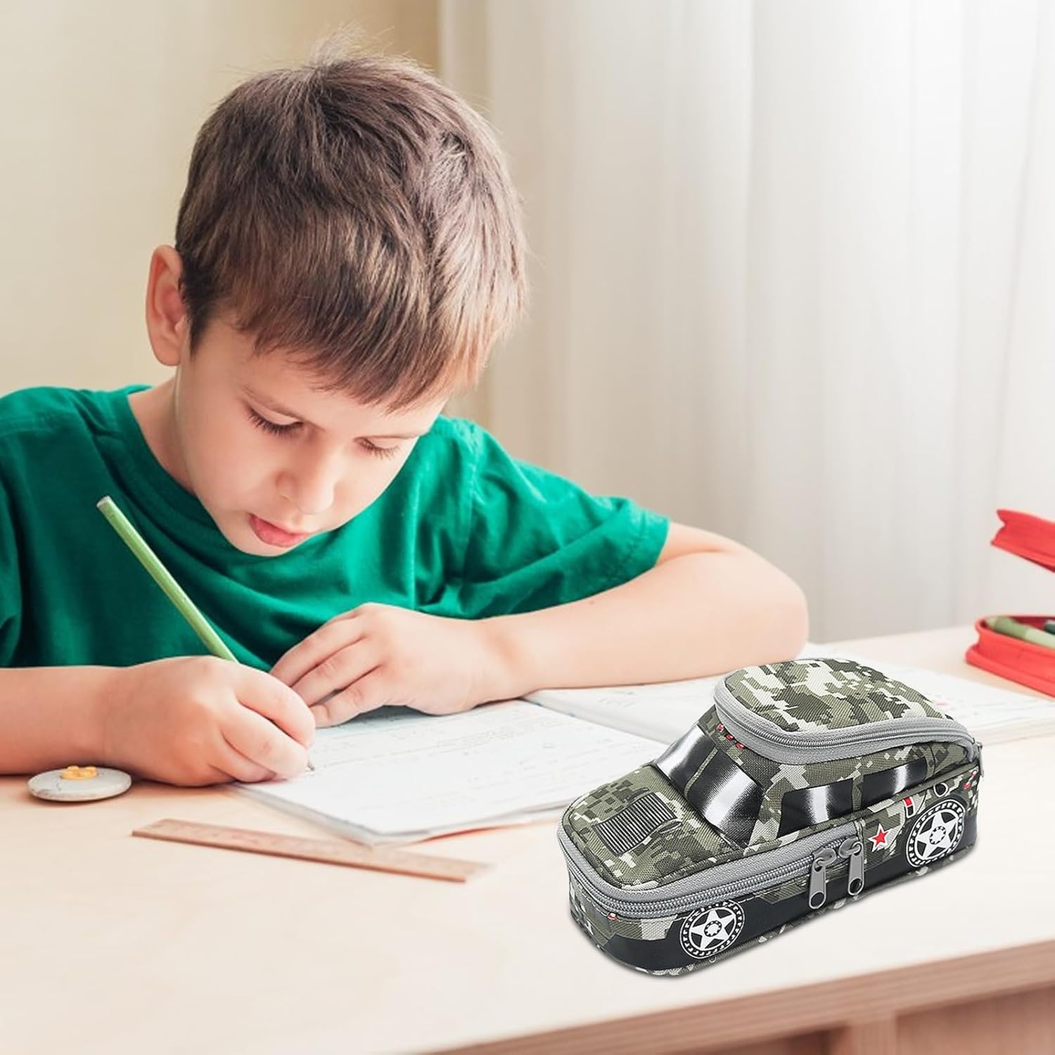 Applicazione variabile: questa custodia a a forma di auto può contenere matite, clip di carta, marcatori, penne, penne a colori e una gomma, mantenendo la cancelleria organizzata e facilmente accessibile Affidabile e robusto: creato con tessuto in poliestere, questa custodia a a forma di auto è affidabile, assicurando che non venga facilmente danneggiato o deformato, garantendo l'uso a lungo termine Facile da usare: dotato di un design con cerniera che impedisce alla caduta degli articoli, questa custodia a forma di auto garantisce un'organizzazione senza sforzo. Accedere facilmente e archiviare la cancelleria con il suo design intuitivo Adatti a luoghi diversi: le forniture scolastiche saranno spesso a portata di mano con questa custodia a forma di auto a forma di auto. Sia in classe, studio domestico o ufficio, questo caso versatile è per l'organizzazione e il trasporto dei tuoi must, rendendolo ideale per luoghi diversi Appeal novità: con un modello di camuffamento alla moda e una forma fuoristrada fresca, questa custodia unica a forma di auto è perfetta per gli amanti della cartoleria che amano i design creativi. La sua praticità e creatività lo rendono un'opzione di archiviazione ideale per tutte le penne e gli appassionati di matite