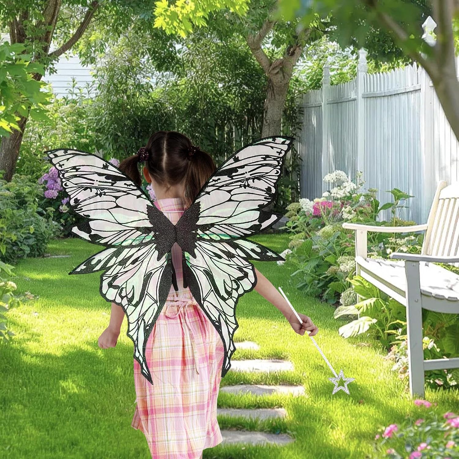 Generico Da Farfalla Per Bambine | Costume Travestimento Da Angelo Con Bacchetta E Orecchini | Accessori Per Feste Di Compleanno Matrimonio Cosplay Ruolo Principessa