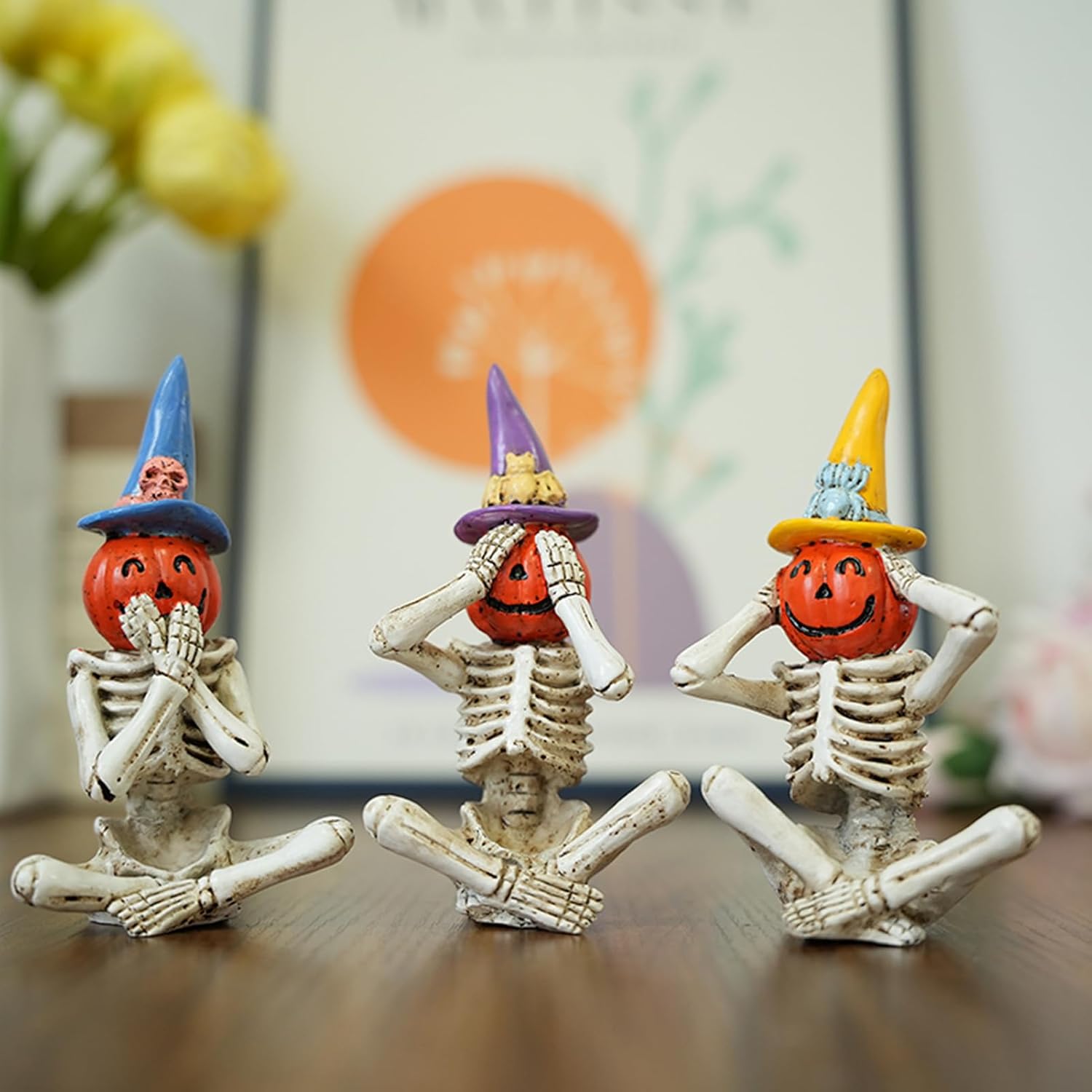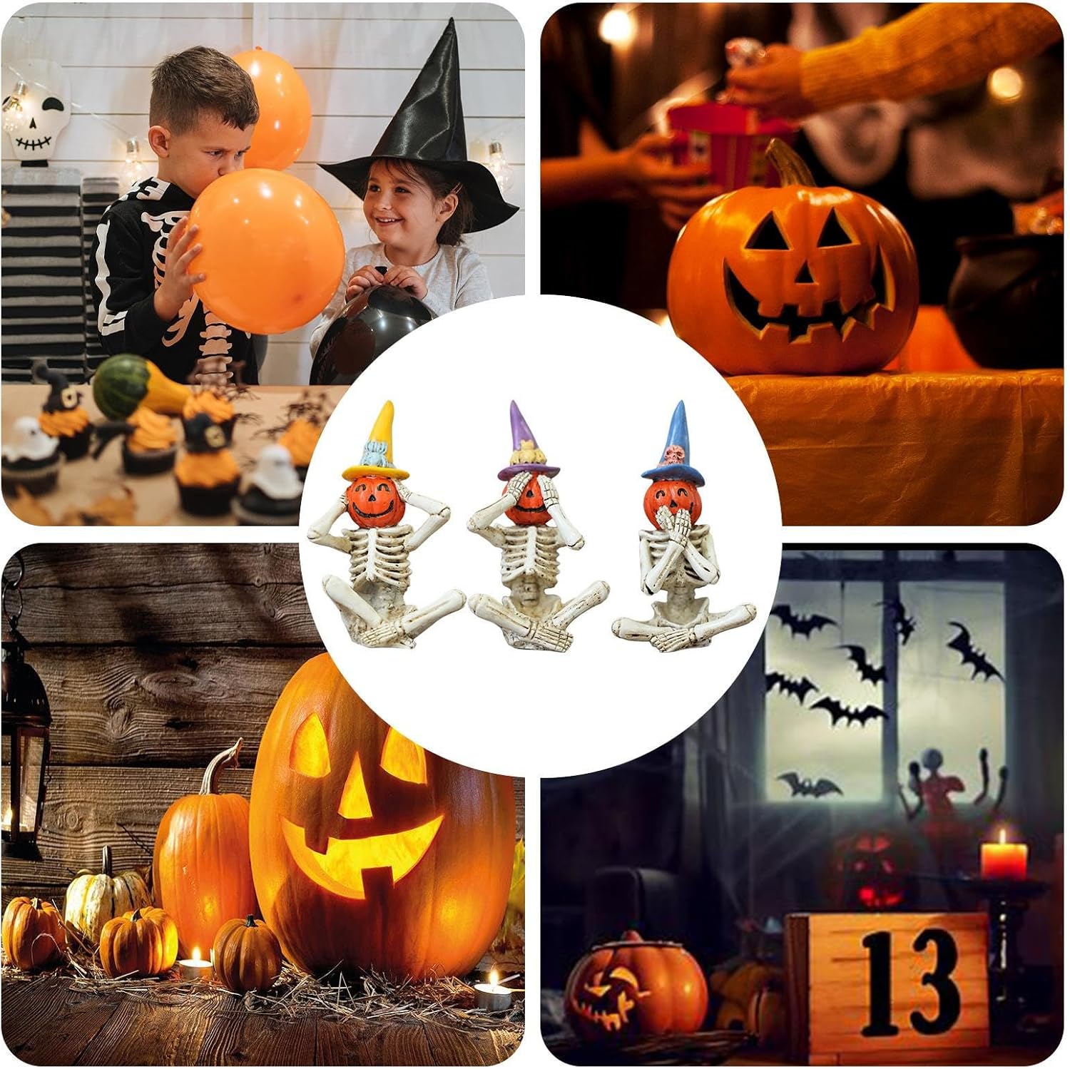 Robusto materiale in resina: migliorata dalla vivida lavorazione dipinta a mano, questa statuina in resina vanta una finitura robusta e resistente all'usura, offrendo una buona profondità visiva attraverso intricati dettagli Versatilità decorativa: progettate per caminetti e banchi da lavoro, le statuine scheletro offrono un'altezza individuale moderata, consentendo composizioni multi-angolo creative per servire come decorazioni d'accento con praticità compatta durante le esposizioni festive. Presente creativo: ideale per la famiglia, la persona amata o un amico durante i festival di Halloween, Natale e Capodanno per esprimere amore e cura con queste statuine scheletro, un regalo memorabile per chiunque occasione Ampia applicazione: adatto per mensole del soggiorno ed espositori da scrivania o per migliorare il tuo giardino, cortile e balcone con un tocco horror, ideale per ambientazioni di case infestate e ampia applicabilità in vari spazi, migliorando l'atmosfera di Halloween in modo naturale Teste di zucca creative: un accattivante set di figurine di Halloween che mescola corpi scheletrici e teste di zucca per catturare vividamente la caratteristica di non vedere il male, non sentire il male, non parlare male, migliorando la tua atmosfera festosa senza sforzo