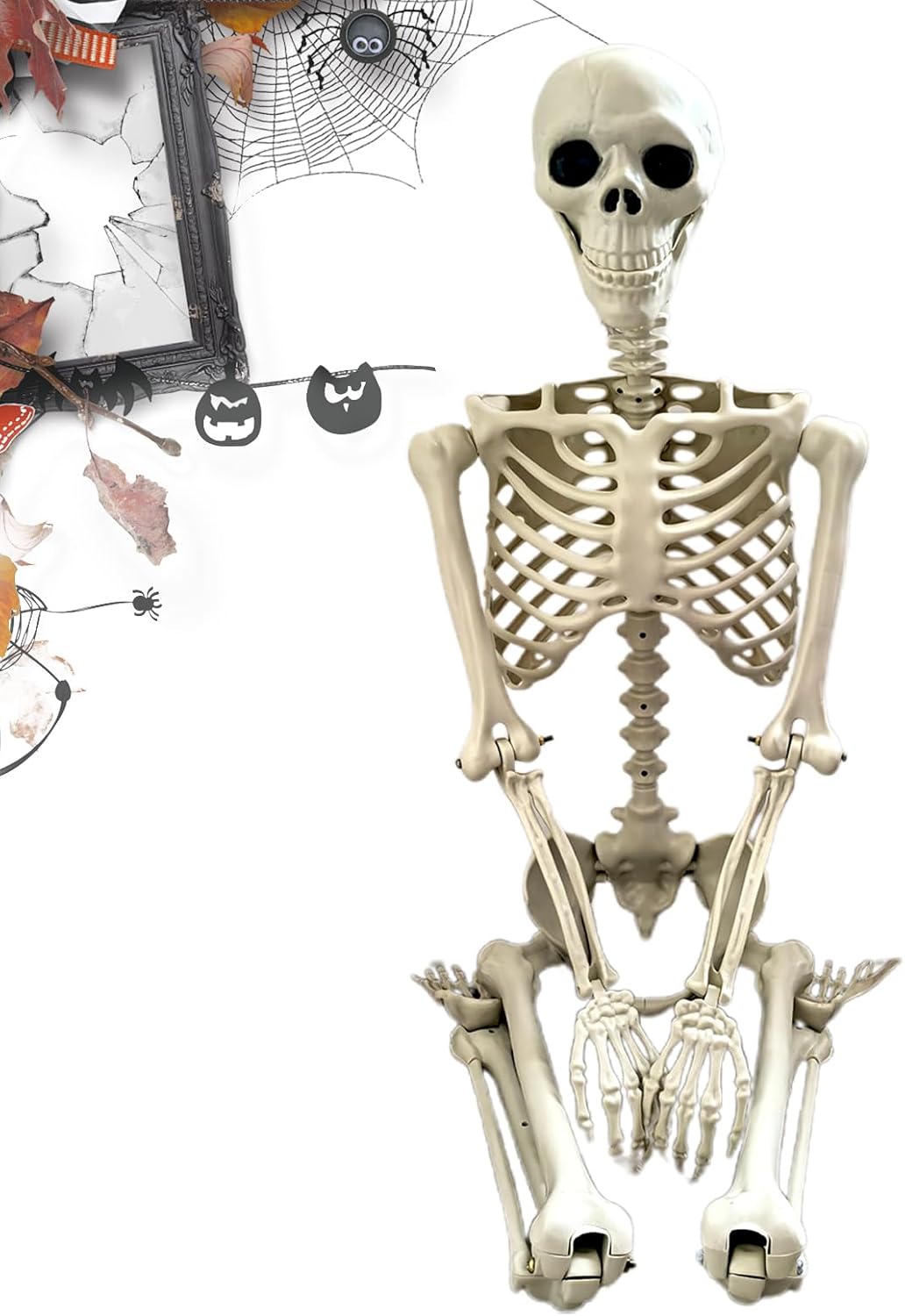 Giunti mobili: le articolazioni articolate consentono allo scheletro di sedersi o arrampicarsi facilmente, offrendo un supporto semplice per creare scene dinamiche e assemblaggi complessi, ideale per decorazioni Halloween versatili Montaggio semplice: Ottieni visivi terrificanti con corde portanti e effetto rami stratificati, montaggio rapido senza problemi per trasformare gli spazi in un ambiente agghiacciante di Halloween Estetica naturale: Combinando proporzioni umane e arte meticolosa, questo scheletro esalta decorazioni spettrali con un aspetto realistico. Amplifica il misterioso di qualsiasi ambiente a tema Halloween in modo convincente. Lunga durata: realizzato con materiali ad alta resistenza, questo scheletro offre stabilità e portabilità. Il suo design creativo e le articolazioni con rotazione multi-angolo consentono di abbinarlo perfettamente a costumi e accessori decorativi per eventi di Halloween, garantendo un uso versatile e duraturo per feste a tema. Applicazione versatile: migliora giardini o set cinematografici con questa decorazione scheletrica. Potenzia creazioni artistiche e atmosfera festiva, completando feste a tema grazie al suo aspetto realistico e molteplici opzioni di posizionamento per decorazioni scioccanti.