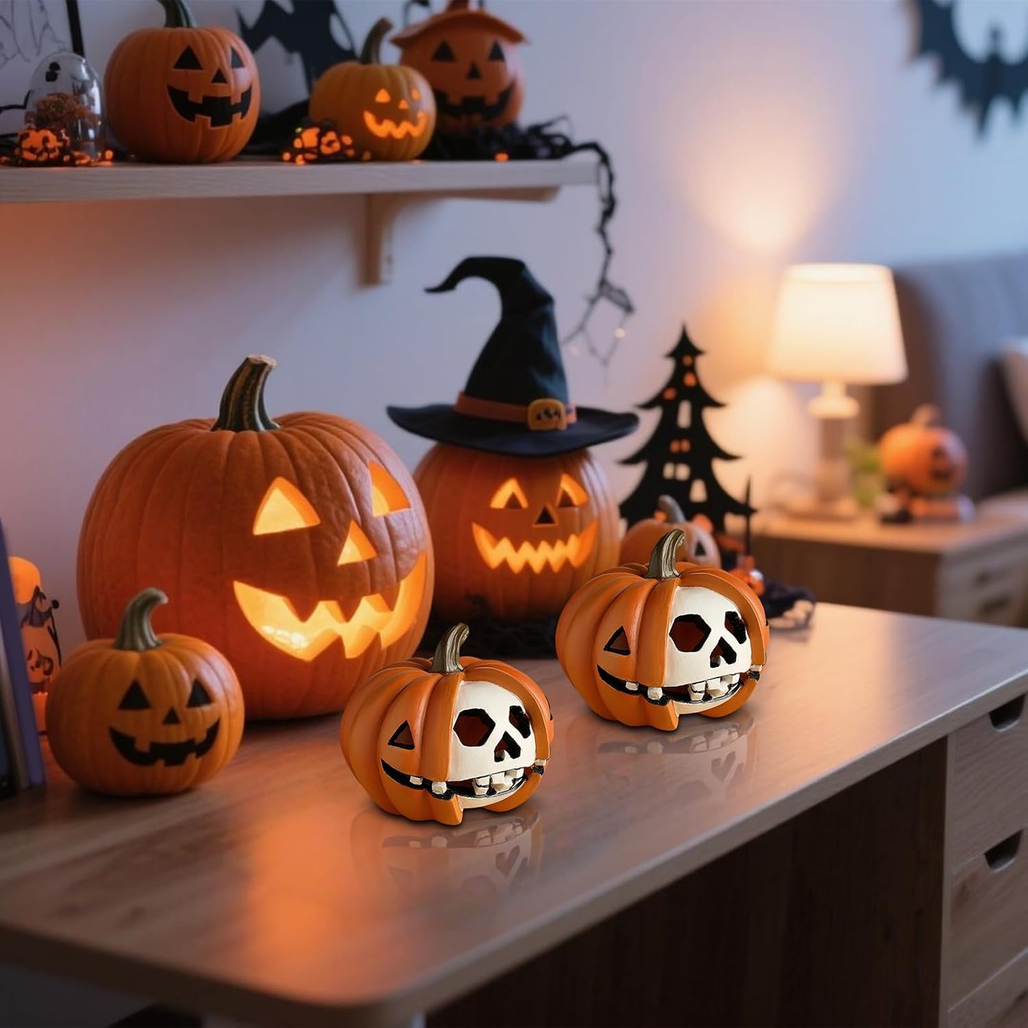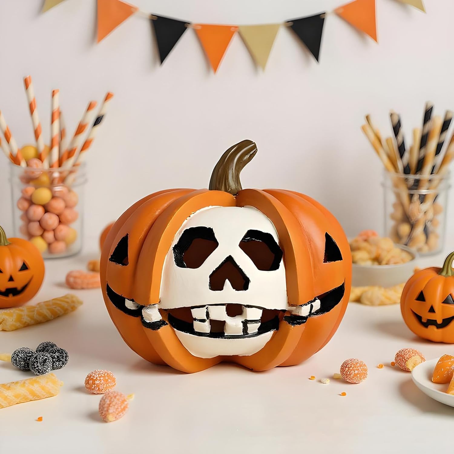 Costruzione : La modellatura in resina ad alta resistenza assicura stabilità strutturale e resistenza alla deformazione, per una lunga durata dei colori vivaci nel tuo a , ottimizzando l'uso stagionale ripetuto Miglioratore Divertimento Festivo: Progettato per amplificare il piacere delle feste, questo decor a tema si integra perfettamente con le sorprese regalo ed è una scelta deliziosa per scambi tra migliori amici durante la stagione di Halloween Versatilità Stagionale: Progettata per armonizzare ambienti festivi, questa decorazione migliora le feste di Halloween con attrattiva stratificata, si adatta facilmente a vetrine e si abbina perfettamente all'arredamento autunnale grazie al fascino stagionale Design Sicuro Senza Odori: Realizzato in resina pregiata con dettagli precisi, questa decorazione a offre una superficie liscia ed è di odori sgradevoli, garantendo una scelta affidabile per abbellimenti festivi domestici gradevoli e innocui Creatività Stagionale: Decorazione unica che fonde simboli iconici di Halloween con un design creativo a teschio, offrendo un aspetto ricercato per evocare un'atmosfera e misteriosa con stile sobrio