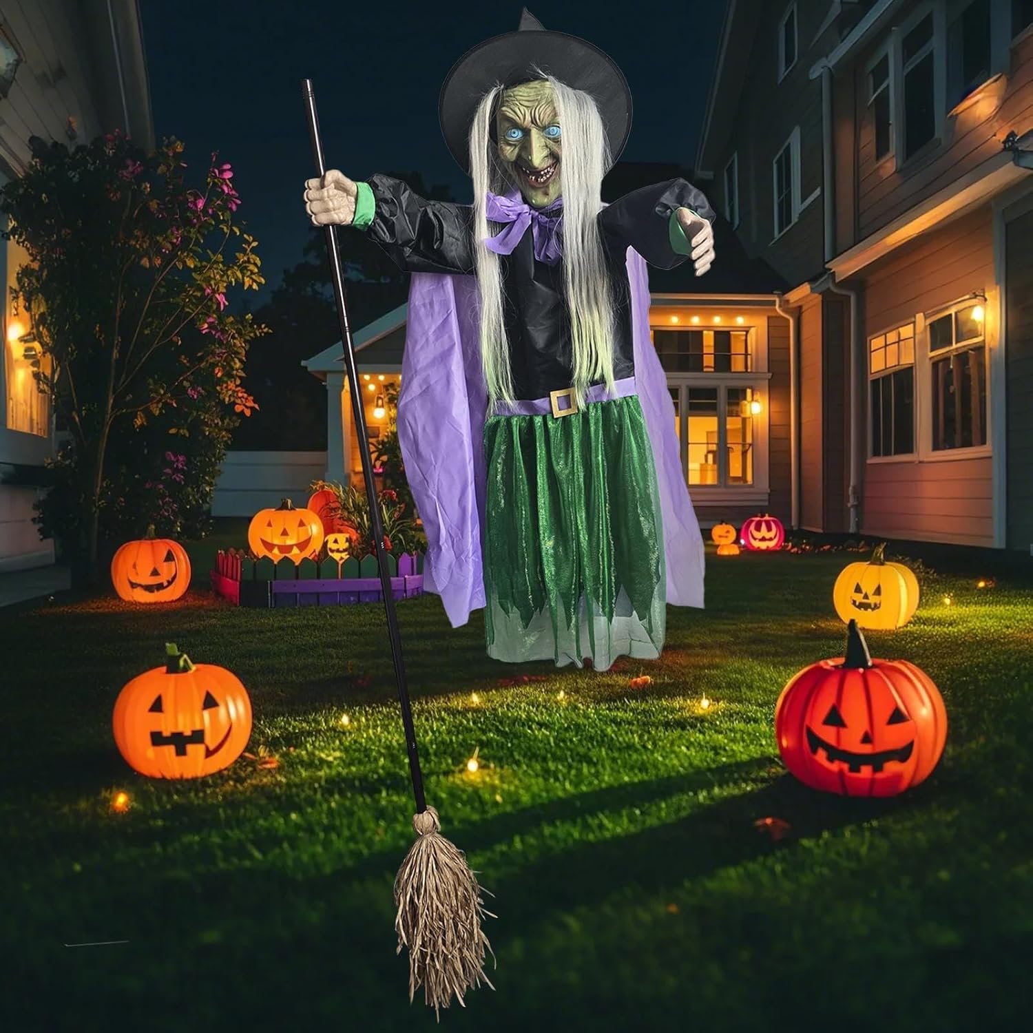 Presenza Spettrale: Decorazione da Halloween che crea momenti indimenticabili unendo effetti da brivido e fascino sorprendente per arricchire le festività stagionali con la sua inquietante figura volante Reazioni agli ospiti: Attivata dal passaggio delle persone, produce suoni spaventosi, movimento fantasma e occhi LED luminosi per simulare interazioni spaventose durante le serate di Halloween Supporto Invisibile: Realizzato per mimetizzarsi discretamente di giorno, il fantasma di si trasforma in spettacolo inquietante di notte, elevando efficacemente la tua decorazione Halloween con design a scomparsa Arricchimento Giardino Spettrale: I dettagli scolpiti del viso conferiscono autenticità , mentre il design fluttuante e la scopa integrata un punto focale avvincente per spazi esterni. Visibilità diurna e notturna garantita. Tocco Spaventoso: Esalta l'atmosfera Halloween con questa decorazione a tema , perfetta per feste in costume, case te ed eventi cosplay per intensificare naturalmente l'ambiente misterioso