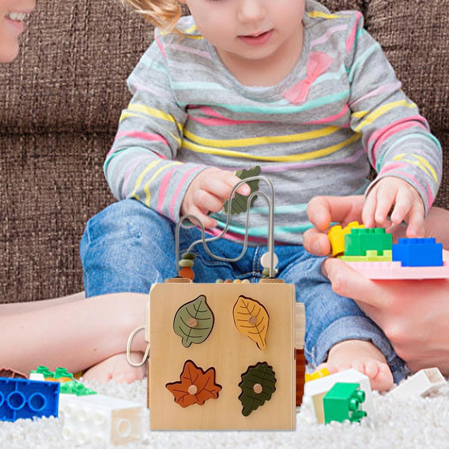 Strumento Logico-Educativo: Attraverso il gioco immersivo, sviluppano capacità di ragionamento e coordinazione bilanciata tra le mani, migliorando contemporaneamente la concentrazione e le abilità motorie fini essenziali per la crescita cognitiva infantile Design a misura di bambino: Forme ergonomiche con spigoli sicuri e base stabile prevengono incidenti, garantendo che nessun elemento si separi durante il gioco con i mattoncini educativi Percezione Cromatica: Rafforza la distinzione dei colori e delle forme attraverso combinazioni visive stimolanti. I in legno migliorano la coordinazione occhio-mano e la comprensione spaziale, guidando naturalmente i bambini verso soluzioni creative durante le sessioni di gioco interattivo. Gioco su misura: I di legno sono realizzati per supportare ogni fase di crescita, dai primi movimenti alle costruzioni creative, adatti a bambini dai dodici ai trentasei mesi. Ogni pezzo incoraggia l'esplorazione e l'apprendimento attraverso un design pensato per le diverse età. Design multifunzione: include percorso per palline e sfide di abbinamento forme su un pannello , stimolando la coordinazione motoria e lo sviluppo cognitivo giocando con di legno