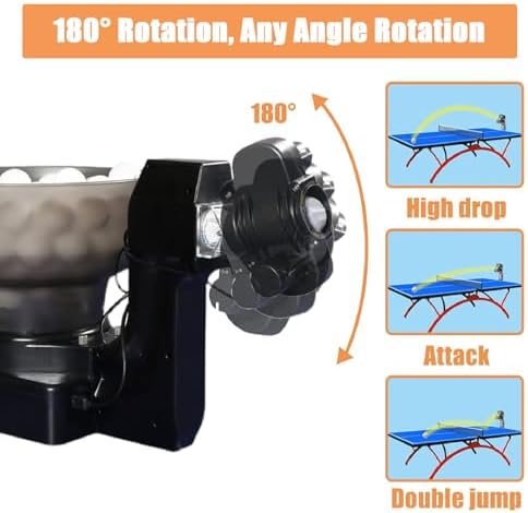 【Capacità】: Il nostro robot da ping pong può contenere 110 palline da ping pong standard internazionali con un diametro di circa 40 mm (1,57 pollici). Si prega di utilizzare più di 15 palline per utilizzare questa macchina. Se ci sono meno di 15 palline, le palline non usciranno 【36 tipi di palline rotanti】: il robot da ping pong ti consente di inviare 36 tipi di palline rotanti, su, giù, sinistra, destra e varie palline rotanti laterali miste. Adotta la trazione a doppia ruota, quindi la velocità di rotazione può essere regolata separatamente e può anche inviare palline non rotanti, il che è più vicino alla pratica effettiva 【Frequenza della pallina della macchina da ping pong】: la macchina per palline da 0 a 5 marce regola la frequenza della pallina della macchina per palline. Ruota il pulsante della frequenza per regolare la frequenza della pallina in base alle tue esigenze. Ruota da sinistra a destra e regola la velocità da lenta a veloce 【Angolo di inclinazione regolabile】: i cambiamenti automatici del punto di atterraggio anteriore, posteriore, sinistro e destro del server della palla possono essere impostati arbitrariamente per ottenere un lancio multi-punto a punto fisso, multi-area e a tavolo intero 【Facile da smontare e montare】: la macchina da tennis da tavolo è molto comoda da installare e disinstallare. In base alle tue preferenze, è compatta e portatile, facile da trasportare