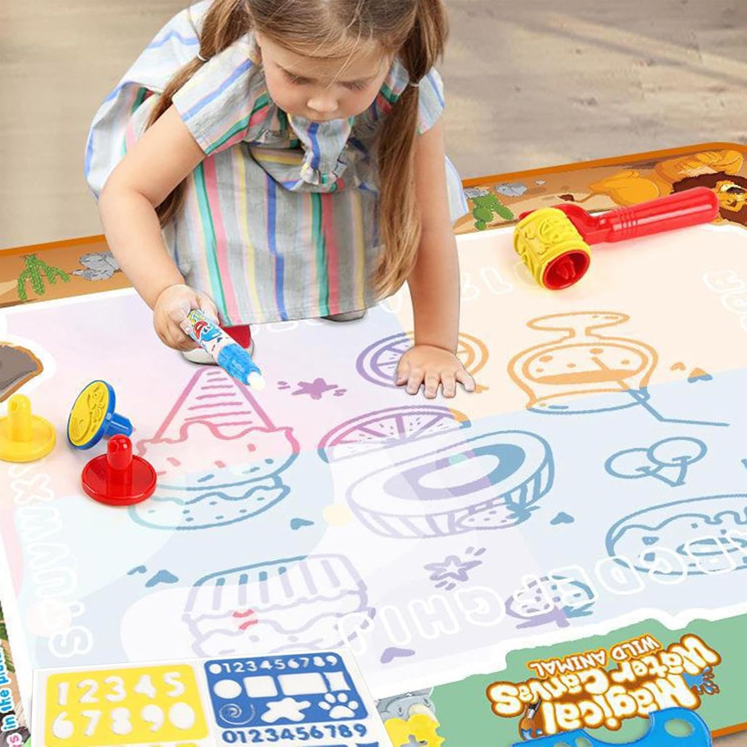 Materiali di alta qualità: realizzato in tessuto non tessuto di poliestere di alta qualità, questo blocco da disegno per scarabocchi ad acqua è durevole, sicuro ed ecologico. Basta pulirlo con un panno umido ed è pronto per il prossimo utilizzo. Facile da usare: disegna sul blocco per scarabocchi ad acqua con la penna charm riempita con acqua pulita e guarda la tua d'arte scomparire dopo 5-10 minuti, pronta per una nuova creazione. Non sono necessari inchiostro, vernice o pastelli, acqua. Goditi un divertimento senza inchiostro e senza problemi con i tuoi bambini. Promuovi la crescita artistica: incoraggia la crescita artistica di tuo figlio con il nostro blocco da disegno con scarabocchi ad acqua, un'attività divertente ed educativa che sviluppa la coordinazione occhio-mano e la percezione del colore. Ottimo regalo: lascia che la creatività dei tuoi bambini si scateni senza problemi utilizzando questo blocco da disegno con scarabocchi d'acqua. Facile da pulire e riutilizzabile, è un regalo per il Ringraziamento, Natale, vacanze speciali per bambini o compleanni. Facile da trasportare: con un design pieghevole, questo blocco da disegno con scarabocchi ad acqua lo rende facile da trasportare in zaino e utilizzarlo sempre e ovunque, consentendoti di utilizzarlo in qualsiasi momento