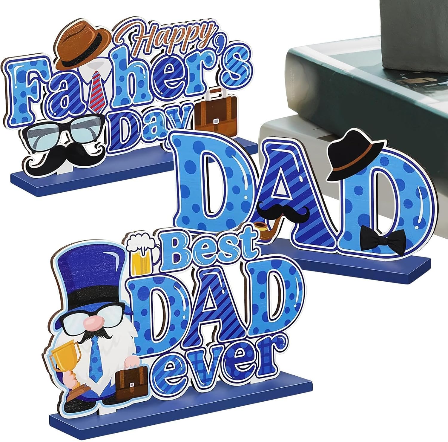 Thoughtful and Decorative Gift for Dad: This Father's Day wooden sign set features heartfelt messages and rustic charm, making it a perfect tabletop decoration or meaningful gift for dads, grandfathers, or husbands on special occasions Rustic 3-Piece Wood Design: Crafted from quality wood with stylish prints, the set includes three matching pieces that can be arranged together or spread across the home, creating a cohesive and heartwarming display in any room Versatile for Multiple Settings: These wooden plaques are ideal for display on desks, shelves, mantels, or dining tables, adding a cozy and personal touch to your , living room, or bedroom during Father’s Day or birthdays Ready to Display with No Assembly Needed: Each sign is pre-finished and ready to place, so you can decorate effortlessly. No nails, hanging tools, or additional setup required just unwrap and display as a quick home accent or celebration piece Perfect for Family and Friends Gifting: Whether gifting to your dad, stepdad, husband, or a family friend, this set makes a charming present that adds warmth to any home and celebrates the strength and love of fatherhood