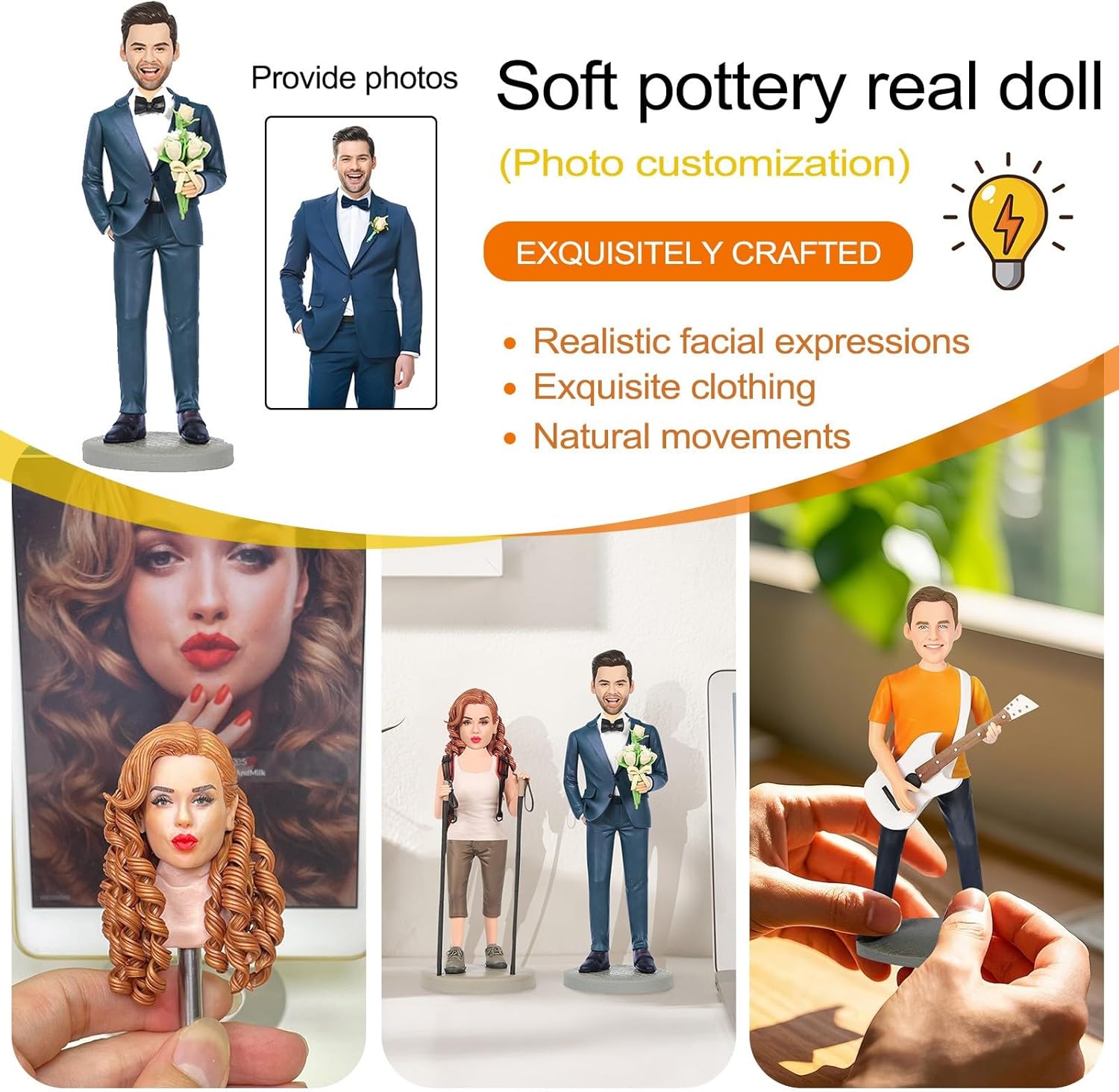 1: Uno strano promemoria: in base alle foto che offri qui, le statuette graziose sono perfette ed eleganti. Che si tratti di un matrimonio, di un compleanno, della festa del papà o della festa della mamma: è un ricordo speciale che porta con sé amore e ricordi che rendono ogni giorno speciale ancora più significativo. È un regalo unico che trasmette un sentimento di preoccupazione e affetto a chi lo riceve. 2: Laboratorio qualificato e valore artistico: le piccole statue sono realizzate da artigiani esperti, il materiale è di alta qualità e passa attraverso un processo multidimensionale. L'espressione facciale e i tratti brutali del viso sono un'opera d'arte. Non è solo un regalo; È un'opera d'arte preziosa per dare alle persone una vitalità artistica che preserva l'amore e la bellezza. 3: una connessione emotiva e un promemoria: la piccola statua è una connessione emotiva. Vedere la bambola viva risveglia, per così dire, la sensazione più bella che hai con te. Che sia per un'amica, una mamma, un papà o una sorella: un regalo che trasforma l'amicizia in un dono. 4: Regalo personalizzato: le piccole statue sono un regalo creativo e personalizzato. Offriamo una varietà di modelli che soddisfano le nostre esigenze. Quando il destinatario riceve questo regalo artistico unico, lascia un'impressione memorabile che rende la celebrazione così speciale e toccante. 5. Nota: abbiamo bisogno della foto ged per facilitarci le cose e tu lo farai molto di più. L'opera è realizzata a mano e può essere corretta con una deviazione da 1 a 3 cm. Ti ringrazio per la comprensione.