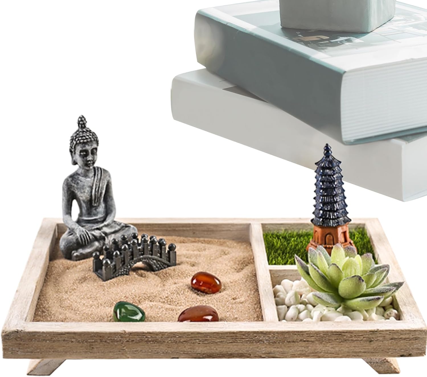 Paesaggio in miniatura calmante: con una straordinaria statue ambientata in un vassoio di sabbia, questo giardino Zen per desktop cattura l'elemento di un giardino giapponese di paesaggi asciutti, creando un'atmosfera rilassante Affidabile e robusto: costruito con una tavola ad alta densità permanente, questo kit da giardino Zen promette un luogo calmante, trasformando il tuo ambiente in un ritiro pacifico Usi multifunzionali: un accessorio pacifico, questo giardino zen giapponese porta alla tranquillità attraverso il suo bellissimo design, creando un ambiente per la meditazione e il rilassamento Squisitamente realizzato: splendidamente realizzato, questo giardino Zen decorarà perfettamente il tuo spazio con dettagli squisiti, dandoti una guida stimolante Ampio ambito di usi: realizzato per l'integrazione senza soluzione di continuità sul tuo posto di lavoro, questo giardino Zen desktop migliora l'atmosfera del tuo salotto, migliorando la concentrazione e la creatività in qualsiasi ambiente