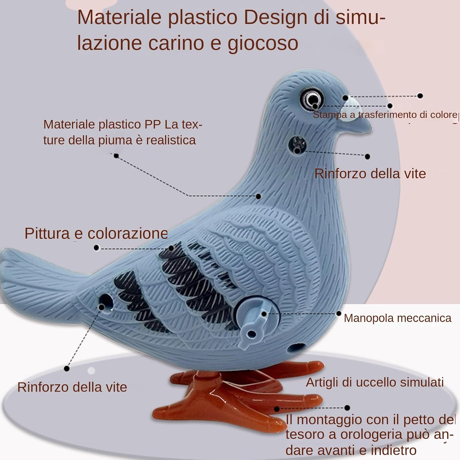 Realismo migliorato: con superfici finemente lavorate e piume chiare e strutturate, il nostro giocattolo a carica cattura accuratamente i dettagli di un piccione nella vita reale. L'immagine complessiva è straordinariamente realistica, rendendolo l'aggiunta perfetta alla collezione di qualsiasi appassionato di natura Divertimento per tutti: carica il giocattolo a carica del piccione utilizzando la manopola per attivare il meccanismo a orologeria integrato e guardalo compiere un atto unico e giocoso. Migliora il divertimento e il divertimento dei tuoi con questo giocattolo ricco di azione Gioia che dura a lungo: realizzato in materiale ABS di alta qualità, garantisce che sia sicuro, non facile da sbiadire, resistente alla ruggine e mantenga la sua forma per un divertimento duraturo Facile da trasportare: caratterizzato da un design leggero e portatile, questo giocattolo a carica è facile da trasportare, permettendoti di divertirti giocando sempre e ovunque, con le sue dimensioni moderate adatte per l'intrattenimento all'aperto Design multiuso: trasforma il tuo spazio abitativo con questo splendido giocattolo a carica di piccione che funge da pezzo decorativo. Aggiunge un tocco di eleganza alla tua libreria e al davanzale della finestra, rendendolo un complemento per qualsiasi casa. Con la sua bellezza accattivante e la sua funzione decorativa, questo giocattolo a carica è più di un semplice giocattolo, è una decorazione accattivante