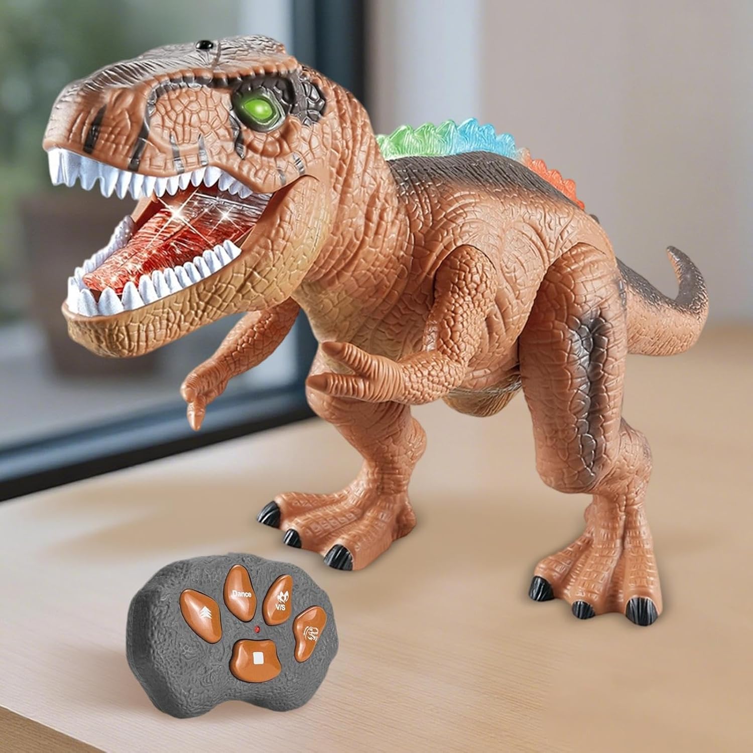 Effetti Realistici: Riproduzione fedele di camminata dinamica e potente, garantendo un gioco preistorico immersivo con massimo divertimento tramite telecomando senza fili Cambio Batterie Istantaneo: Il dinosauro telecomandato ha batterie sostituibili con un semplice pulsante, ideale per bambini: manutenzione rapida e gioco continuo senza pause, garantendo facilità d'uso e divertimento senza interruzioni. Funzioni Interattive Luce-Suono: L'di design vivace, ruggiti realistici e luci LED multicolore crea effetti luminosi dinamici, garantendo spettacolo audiovisivo che ispira divertimento senza fine Prestazioni Potenziate: Movimenti realistici con luci e suoni sincronizzati, mentre il interno aumenta l'interattività e il valore ludico complessivo Movimenti Realistici:Testa che oscilla, cammina, balla con diverse azioni e occhi lampeggianti, ispirando giochi di fantasia per bambini di tutte le età