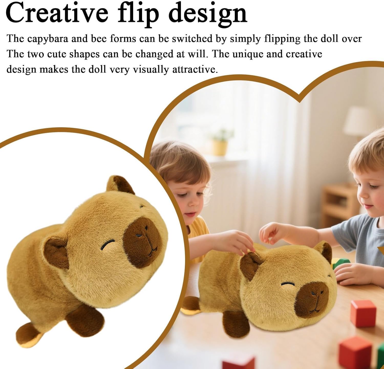 Regalo Divertente: Delizia familiari, partner e amici con questo simpatico peluche di capibara, ideale per compleanni, festività, Natale e Capodanno per esprimere cura in modo spontaneo e premuroso Peluche Decorativo: Combina la funzione di giocattolo morbido e accessorio d'arredo. Il suo design accattivante diffonde charme e crea un'atmosfera accogliente in qualsiasi ambiente domestico con estrema facilità. Qualità del Tessuto: La superficie in velluto fine garantisce una piacevole sensazione epidermica, abbinata a ovatta PP iperelastica che preserva la forma originale e dona comfort persistente, ideale per tutto il giorno Valore Decorativo:Peluche capibara concepito per arricchire camerette, stanze dei bambini e aree living. La presenza coinvolgente e il design flessibile un'atmosfera allegra, trasformandosi in un elemento decorativo funzionale per abbellire gli spazi con stile. Doppia Funzionalità: Passa dalle forme di capibara ad ape, due stili visivamente accattivanti per vacanze o sorprese quotidiane, arricchisce il gioco con versatilità fantasiosa