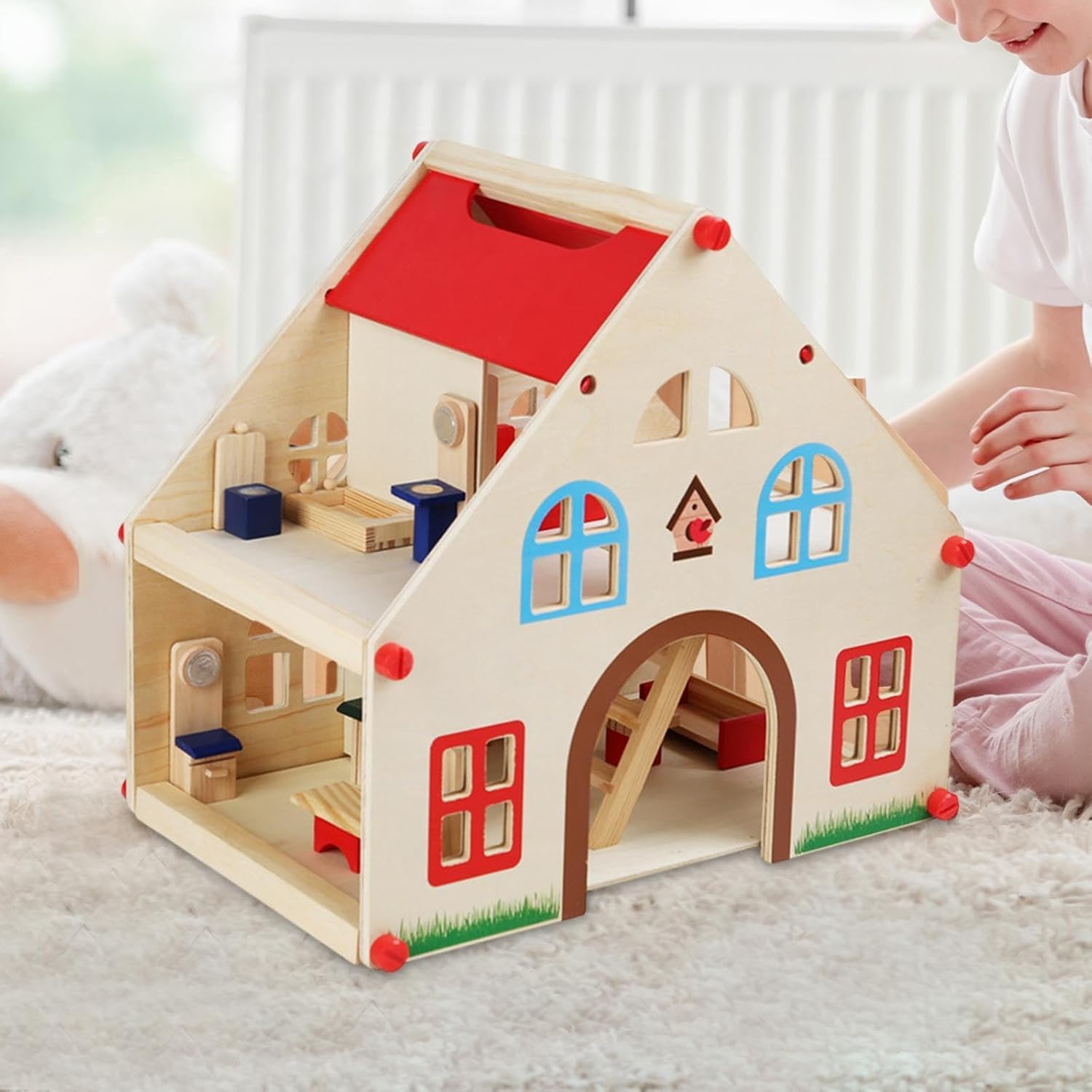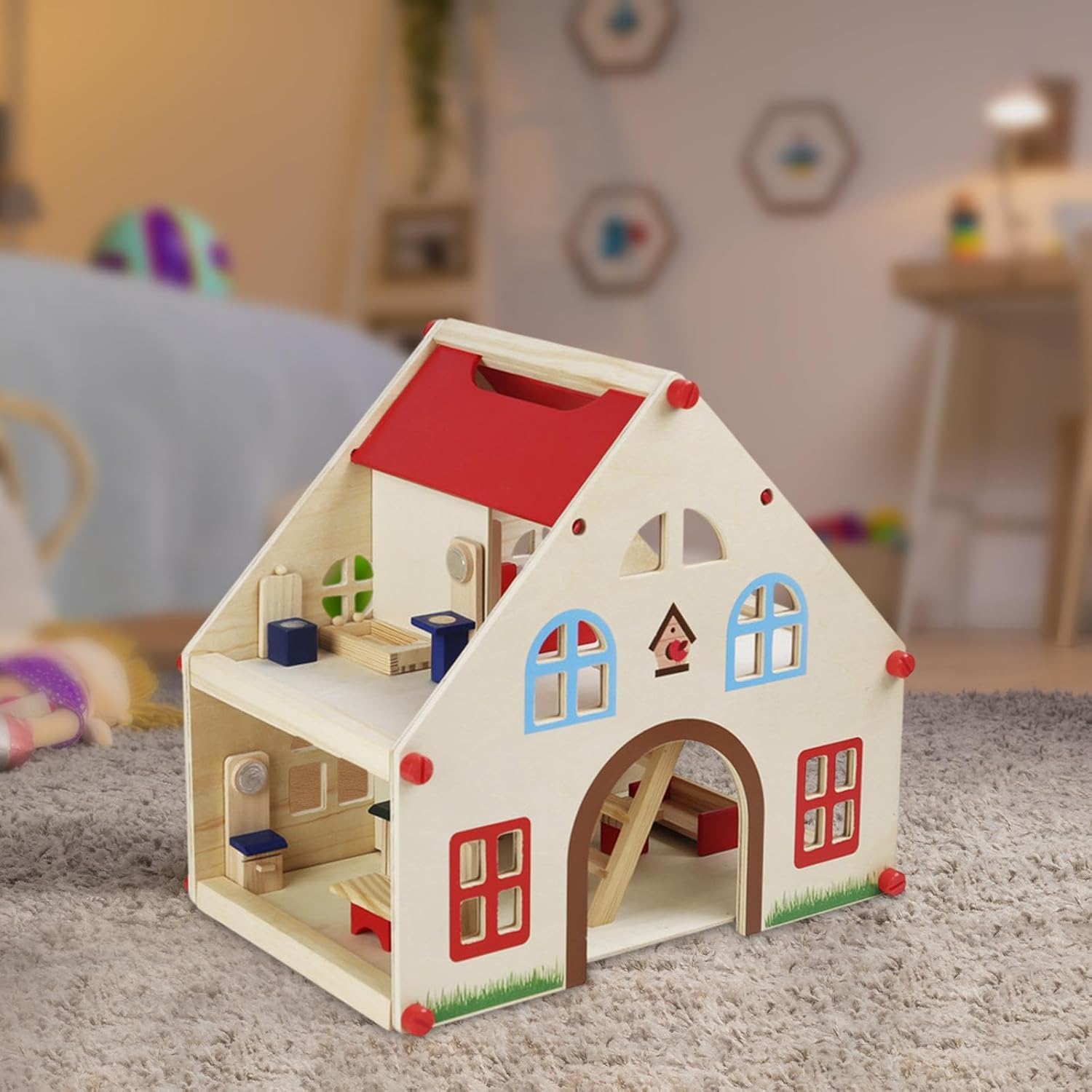 Questa casa delle bambole in legno ha un design realistico con dettagli delicati che non sbiadiscono facilmente, stimolando appieno limmaginazione e la creatività dei bambini. Come giocattolo educativo, è unottima scelta come regalo di compleanno o di festa, permettendo ai bambini di crescere felici attraverso il gioco. La casa delle bambole misura 40,5 cm x 27,5 cm x 38,5 cm, con ampio spazio e una gamma completa di accessori, offrendo unesperienza di gioco perfetta per i bambini. Realizzata in legno di alta qualità con una consistenza calda, crea unatmosfera domestica calda e confortevole che i bambini adoreranno. La struttura è stabile e pesante e la base è ben progettata, rendendo difficile il ribaltamento, garantendo la sicurezza dei bambini durante il gioco.