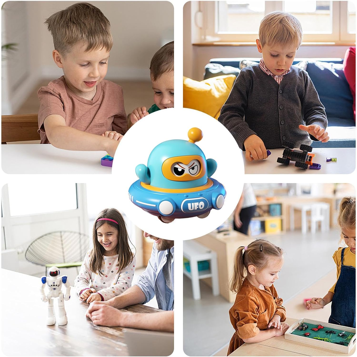 Design adatto all'età: Con un'impugnatura ergonomica per manine e antenne texturizzate facili da afferrare, questo giocattolo assicura una presa comoda mentre le dimensioni appropriate promuovono esperienze di gioco evolutivo sicure e coinvolgenti per i più piccoli. Giocattolo Sicuro per Bambini: Caratterizzato da materiali sicuri e un design di sicurezza con bordi arrotondati, questo disco giocattolo per uso quotidiano assicura una resilienza di gioco duratura grazie alla sua struttura flessibile resistente agli urti, creando un'opzione affidabile per i genitori che cercano qualità costante e tranquillità durante il gioco giornaliero Miglioramento Dinamico: Il giocattolo utilizza la tecnologia a inerzia con ritorno automatico per una funzione di rotazione autonoma, potenziando la coordinazione occhio-mano con un divertente gioco spingi e vai ideale per attività interattive di inseguimento Stimolazione Gioco Sociale: Il giocattolo disco fornisce un divertente gioco interattivo con una funzione ruota e cambia, potenziando il divertimento del gioco di ruolo attraverso espressioni a doppia faccia per una stimolazione sociale coinvolgente e piacevole Base Moderna a Bassa Resistenza: Ideale per scivolamenti fluidi grazie alla base a bassa resistenza e capacità di scorrimento stabile, questo disco volante offre maggiore intrattenimento durante i raduni familiari incentivando l'interazione di gruppo tra giocatori di tutte le età