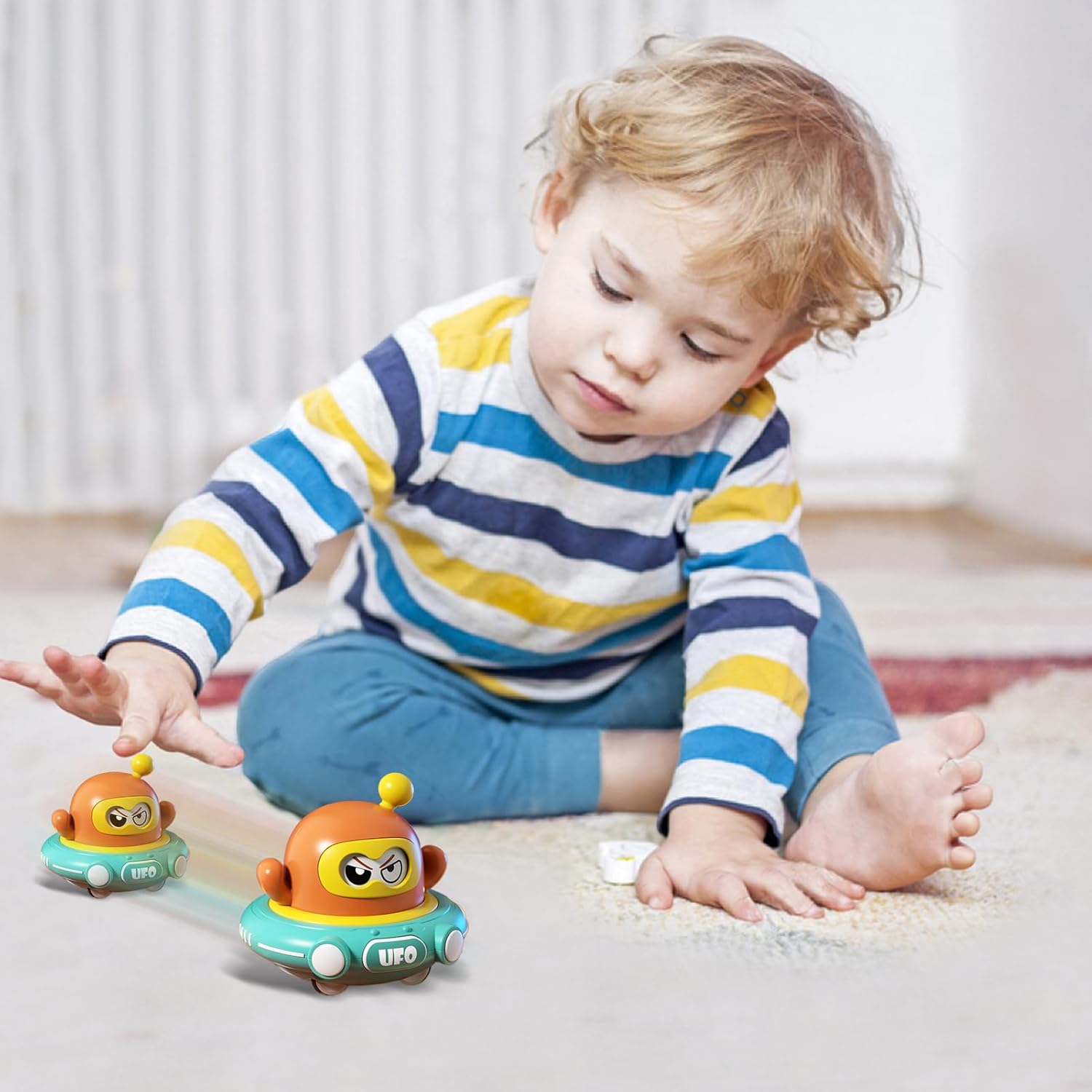 Design adatto all'età: Con un'impugnatura ergonomica per manine e antenne texturizzate facili da afferrare, questo giocattolo assicura una presa comoda mentre le dimensioni appropriate promuovono esperienze di gioco evolutivo sicure e coinvolgenti per i più piccoli. Sicuro e Innocuo: Costruito con materiali robusti e sicuri per bambini, il giocattolo quotidiano per la prima infanzia vanta una struttura flessibile e un design di sicurezza con bordi arrotondati, consentendo una resilienza di gioco duratura mantenendo un ambiente sicuro per il bambino per godere di esplorazione immaginativa senza interruzioni Miglioramento Dinamico: Il giocattolo utilizza la tecnologia a inerzia con ritorno automatico per una funzione di rotazione autonoma, potenziando la coordinazione occhio-mano con un divertente gioco spingi e vai ideale per attività interattive di inseguimento Giocattolo Interattivo: Questo simpatico disco offre un gioco interattivo coinvolgente con le sue espressioni a doppia faccia, stimolando la creatività e il gioco di ruolo grazie all'intuitivo design ruota e cambia volto per ore di divertimento senza fine Gioco da Corsa per Raduni: Con design a ruote scorrevoli e base aerodinamica a bassa resistenza, questo gioco da corsa offre un'azione di scivolamento uniforme, ideale per raduni familiari e per coinvolgenti sessioni di gioco interattivo multi giocatore con adulti e bambini