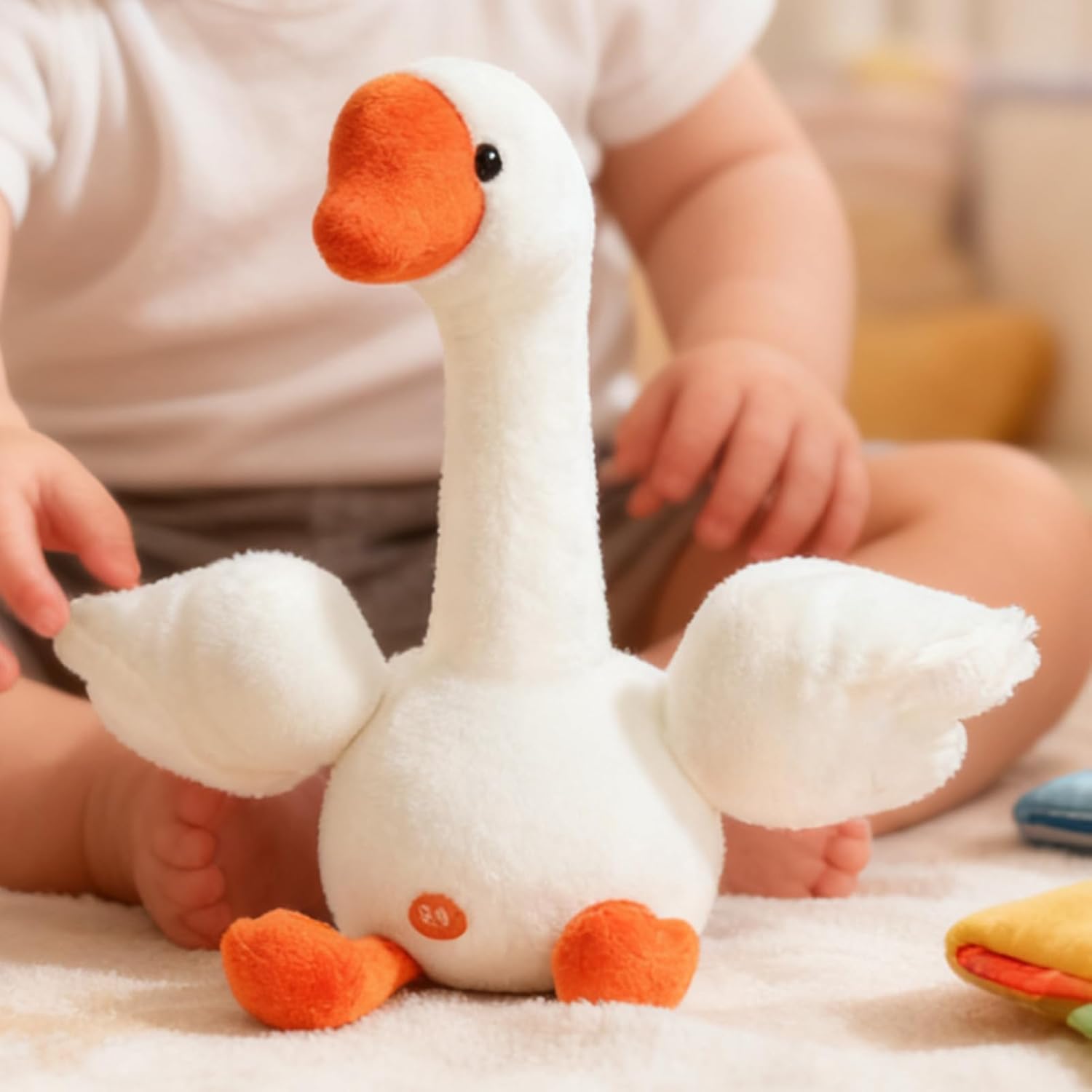 Stimolazione dei Giochi Sensoriali: Il giocattolo Dancing Duck supporta i giochi sensoriali utilizzando azioni di danza attivate al tocco, incoraggiando i bambini a muoversi e interagire mentre godono di 12 melodie rilassanti che favoriscono le abilità motorie e la crescita cognitiva durante momenti di gioco coinvolgenti, enhancing l'apprendimento pratico e la curiosità in modo naturale e gioioso Gioco Morbido e Sicuro: Progettato con imbottitura in poliestere e materiali sicuri per la pelle, questo peluche elettronico assicura una sensazione morbida e duratura, supportando un gioco quotidiano sicuro e diventando un amico coccoloso prezioso durante il riposino o i momenti di narrazione in classe, per momenti di relax e creatività. Design Adatto ai Bambini: Il giocattolo peluche musicale vanta una forma arrotondata e sicura che minimizza rischi durante la manipolazione, unendo una sensazione tattile calmante a una morbidezza di alta qualità per creare una presenza confortante. Assicura di diventare un compagno di sonno prezioso per i bambini piccoli bisognosi di supporto gentile, favorendo relax e serenità con il suo tocco soffice e rassicurante. di Ricarica Conveniente: Il giocattolo interattivo in peluche vanta la carica Type C e un'autonomia di 4 ore, arricchita dalla modalità smart sleep per ottimizzare le prestazioni della batteria, consentendo ai bambini di divertirsi con il loro compagno preferito tutto il giorno senza pause frequenti per la ricarica e semplificando la routine quotidiana. Gioco Musicale Coinvolgente: Progettato con un altoparlante di qualità, il giocattolo parlante favorisce un di gioco prolungato grazie alle sue multiple modalità musicali e canzoni educative precoci, creando un'esperienza immersiva per i bambini piccoli durante il bagnetto o i viaggi in auto, incoraggiando la curiosità e lo sviluppo del linguaggio in modo organico e spontaneo.