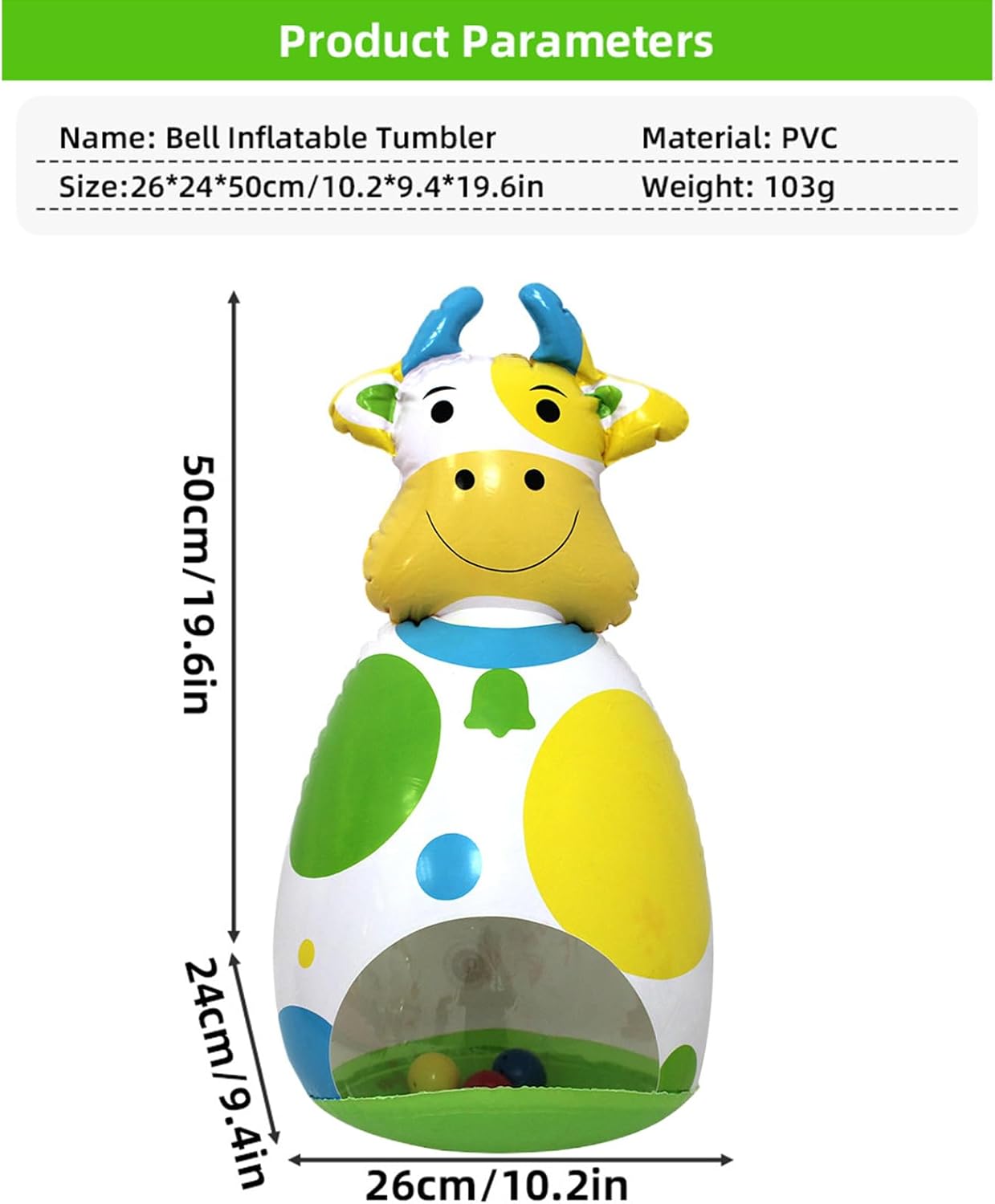 Dinamica Divertente: Delizia i bambini con il movimento oscillante buffo, realizzato con texture morbida sicura e tema bovino incantevole per suscitare curiosità offrendo ore di coinvolgimento nel gioco sensoriale in formato adatto all'infanzia Sviluppo Abilità: Il meccanismo sonoro nascosto produce un suono divertente con un semplice scuotimento, promuove il gioco dinamico migliorando la coordinazione durante l'interazione ludica Materiale Resistente: Realizzato con struttura robusta ma delicata, sostiene il gioco prolungato mantenendo la forma e resistendo all'usura quotidiana, ideale per l'interattività dei bambini piccoli. Regalo Completo:Progettato per diffondere gioia e divertimento, questo giocattolo a forma di gonfiabile è scelta regalo perfetta per compleanni e si abbina a qualsiasi occasione festiva, deliziando i bambini ovunque. Mobilità Semplice: L'opzione di sgonfiaggio rapido riduce il giocattolo a ingombro minimo, garantendo risparmio di spazio e facilità di trasporto in borse per attività all'aperto