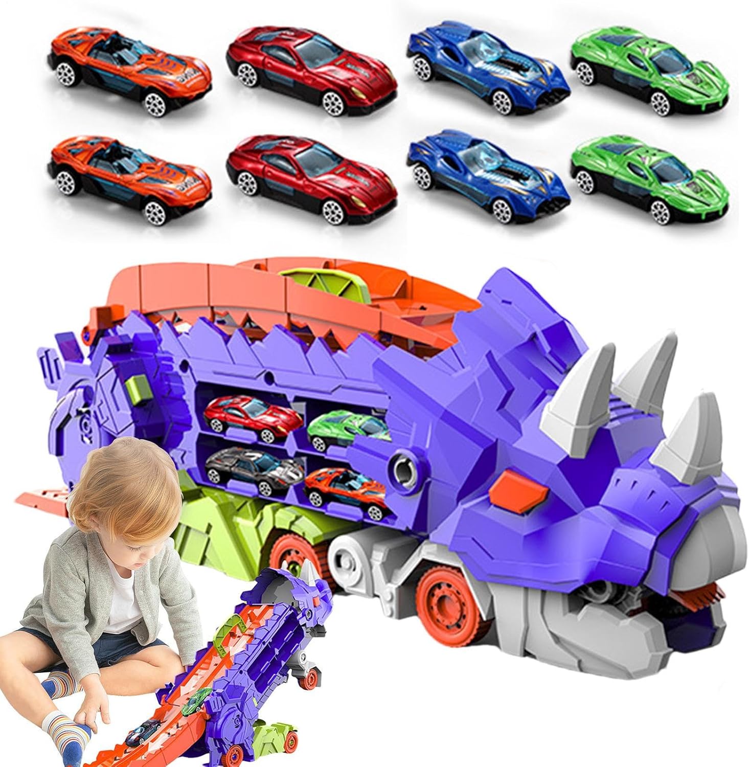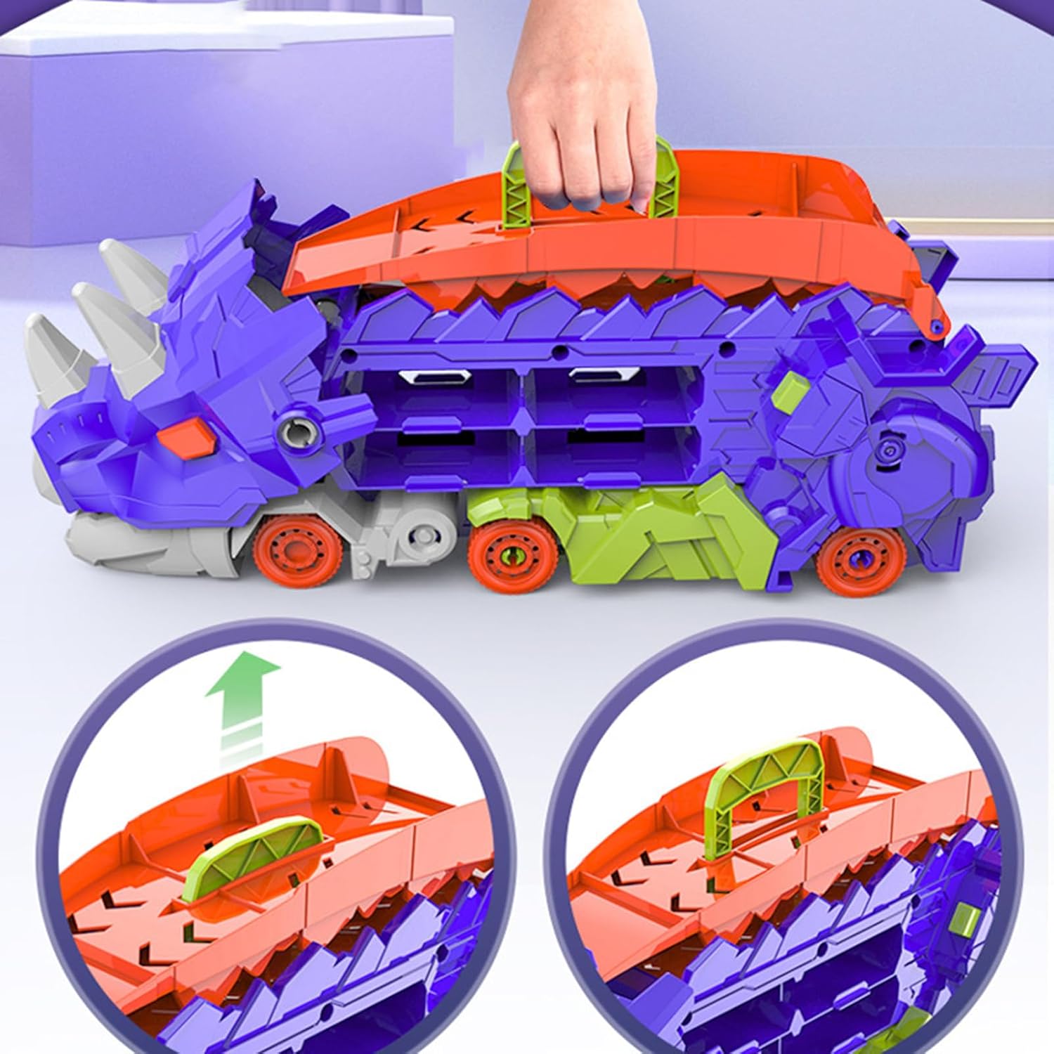 Materiale sicuro: costruito con materiale ABS sicuro e di alta qualità, il nostro camion dinosauro pieghevole offre intrattenimento sicuro e inodore garantendo al stesso un divertimento duraturo per i i bambini. Doppio strato: con spazi su ciascun lato, il nostro camion pieghevole per dinosauri non solo conserva i giocattoli delle auto pressofuse, ma funge anche da un modo divertente e unico per giocarli ed esporli. Design creativo: premi un pulsante e si trasforma in un dinosauro con la capacità di muoversi avanti e indietro come un camion da trasporto grazie al suo meccanismo scorrevole pieghevole. Divertimento semplice: offri un'esperienza di gioco semplice e sicura a figlio con il nostro camion pieghevole per dinosauri. Non è necessario alcun telecomando o batteria, basta aprirlo e guardare l'avventura iniziare! Regalo ideale: esprimi il amore per i bambini con il nostro camion di dinosauri pieghevole, che mostra accattivanti forme di dinosauri e colori vivaci. Il regalo per migliorare la creatività e l'immaginazione dei bambini.
