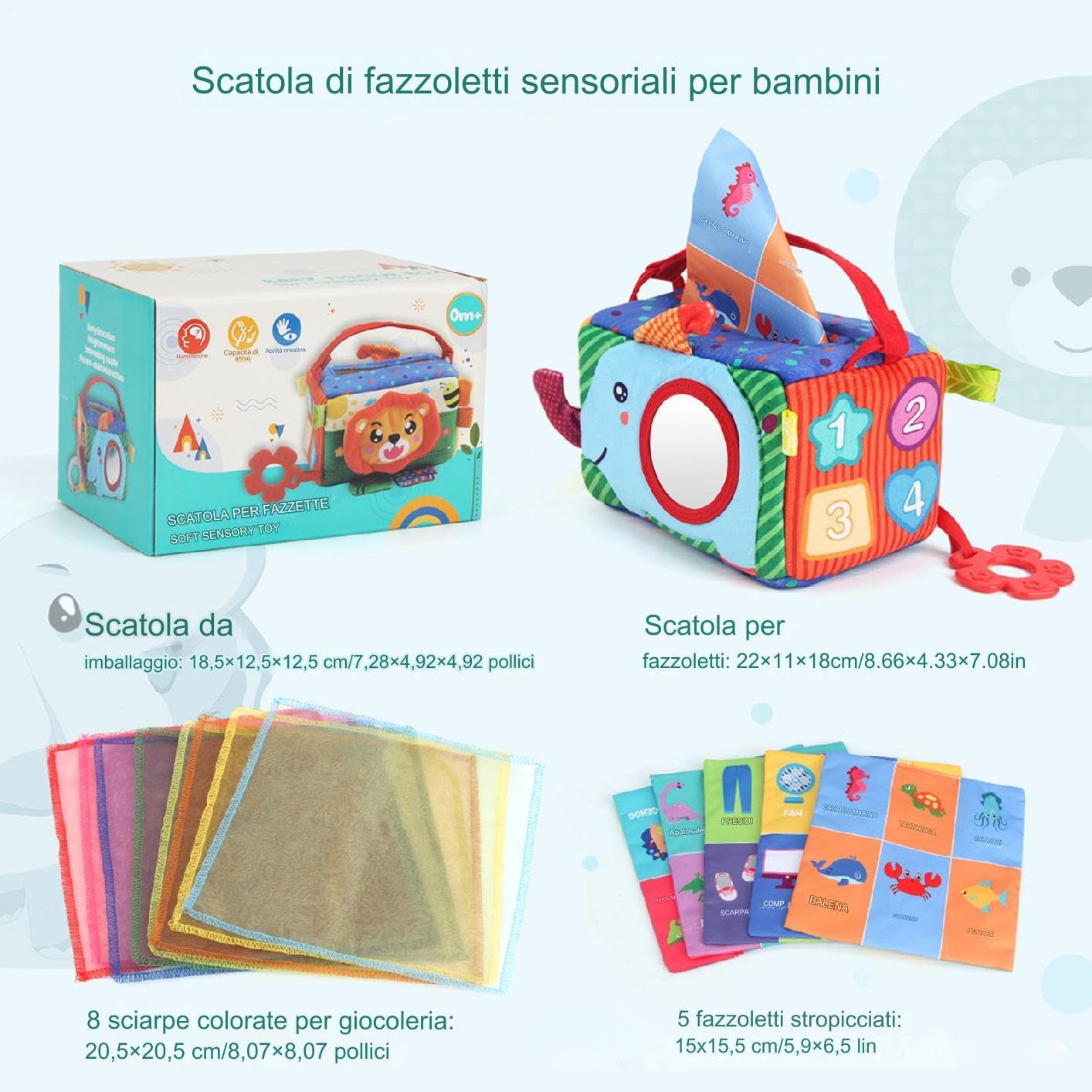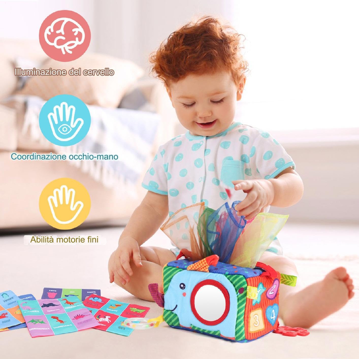 Materiale Forte e Resistente: Questo giocattolo scatola di per bambini è progettato con materiali morbidi ma estremamente robusti, garantendo di resistere a giochi frequenti ed energetici senza perdere la forma o l'attrattiva. I materiali scelti assicurano una lunga durata in diversi scenari di gioco, offrendo intrattenimento sicuro e piacevole per i piccoli, con una struttura che mantiene integrità e comfort nel durante le attività quotidiane. Soluzione Pratica Quotidiana: La scatola di per bebè ha una forma compatta che salva spazio, migliorando la portabilità e soddisfacendo i genitori impegnati in cerca di funzionalità; sia durante gli spostamenti in auto che i viaggi in aereo, questo prodotto mantiene le forniture necessarie facilmente raggiungibili per un uso quotidiano senza interruzioni e con massima efficienza. Compagno Gioco Sviluppativo: Progettato come giocattolo scatola di per bebè, questo articolo fornisce interattivi che promuovono un gioco divertente e avvincente, migliorando la crescita cognitiva e rafforzando i legami familiari attraverso momenti condivisi di interazione creativa e immaginativa a casa o in movimento. per sostenere lo sviluppo del bambino in modo coinvolgente, offre esperienze di gioco che favoriscono l'apprendimento e la connessione familiare in o Regalo Ideale per Occasioni: Il giocattolo di tessuto per bebè presenta una confezione luminosa e colorata che cattura l'attenzione, rendendolo un'opzione di regalo meravigliosa per compleanni e occasioni speciali. La sua adattabilità per garantisce un di gioco sicuro e piacevole per bambini piccoli durante riunioni familiari o celebrazioni, ideale per intrattenere i in contesti festivi e quotidiani. Gioco Sensoriale Coinvolgente: Il giocattolo scatola di per bebè migliora lo sviluppo motorio fine permettendo ai piccoli di afferrare e tirare i , promuove le abilità sensoriali attraverso esperienze tattili e stimoli sensoriali, e supporta la crescita cognitiva durante attività di gioco immaginativo, offrendo un'attività divertente per momenti di familiare, ideale per favorire l'interazione e lo sviluppo emotivo in un contesto ludico e rilassante.