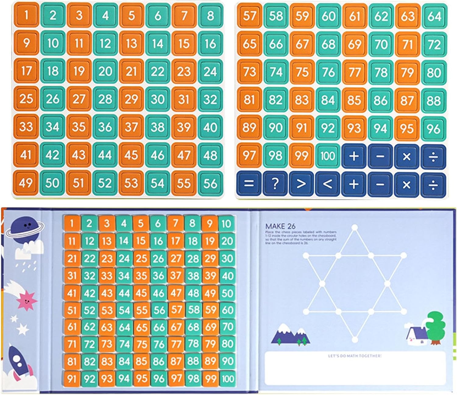 Pratica Matematica Semplice: Combina intrattenimento e conoscenza trasformando la matematica in gioco interattivo, alviando efficacemente la pressione dei metodi di apprendimento tradizionali con attività stimolanti Sviluppo del Senso dei Numeri: Attraverso compiti graduali i bambini esplorano i numeri da 1 a 100 e si esercitano in addizioni e sottrazioni, costruendo solide per competenze matematiche nella scuola 'infanzia e primaria Esperienza di Gioco Sicura: Cartoncino bianco bordi vigati e componenti lucidati a mano garantiscono un gioco sicuro per bambini dai 3 anni, con angoli arrotondati per prevenire eventuali inconvenienti durante l'utilizzo del gioco da tavolo matematico. Supporto per Gioco Focalizzato: Connessione magnetica robusta assicura che tutte parti rimangano ferme durante l'uso, favorendo un ambiente di concentrazione e attività di apprendimento matematico pratico Apprendimento delabilità: Raggiungi la somma di 26 per linea posizionando numeri, favorendo lo sviluppo di capacità critiche di logica e ragionamento insieme alla percezione spaziain un'esperienza di gioco da tavolo matematico progettata con cura