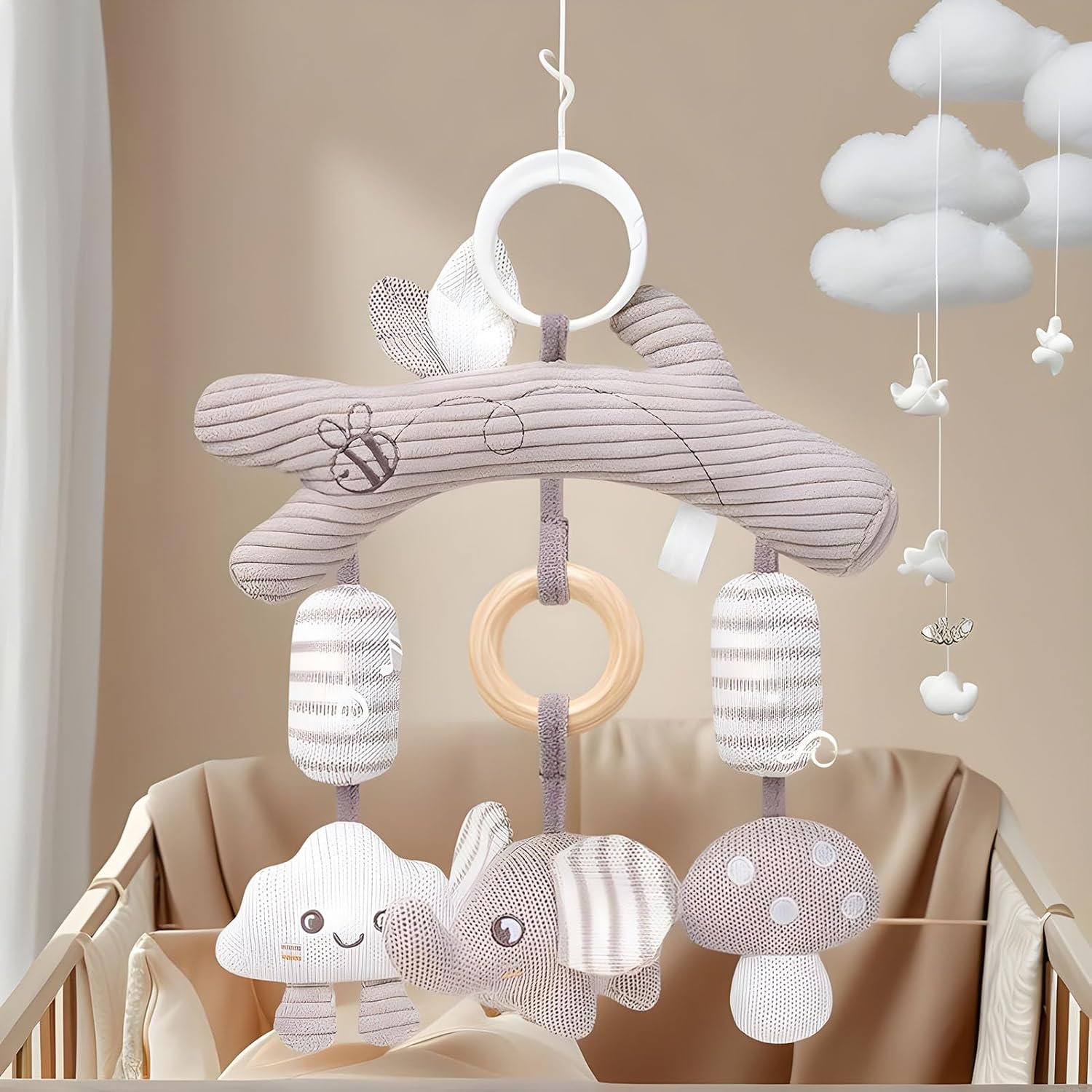Fissaggio intuitivo:Meccanismo a fibbia antiscivolo per una installazione sicura e senza , elimina il rischio di scivolamento garantendo stabilità ottimale durante le passeggiate senza necessità di . Soluzione Universale: Con altezza e angolazione regolabili per gioco e riposo, si adatta a passeggini, culle e spondine, offrendo flessibilità per spazi differenti e abitudini quotidiane Esperienza Rilassante: Il suono delicato e la rotazione dinamica catturano l'attenzione del bebè alleviando il pianto, favorendo un sonno durante il gioco o il riposo con un effetto calmante naturale per il tuo bambino. Stimolazione Sensoriale: Colori ad alto contrasto e un sonaglio nitido incoraggiano curiosità ed esplorazione, sostenendo lo sviluppo visivo e uditivo durante il gioco per bambini. Design Sicuro: Superficie delicata e giunture ben fissate assicurano che il giocattolo sia completamente sicuro quando i piccoli lo mordicchiano o lo impugnano, eliminando pericoli durante il gioco e le esplorazioni quotidiane