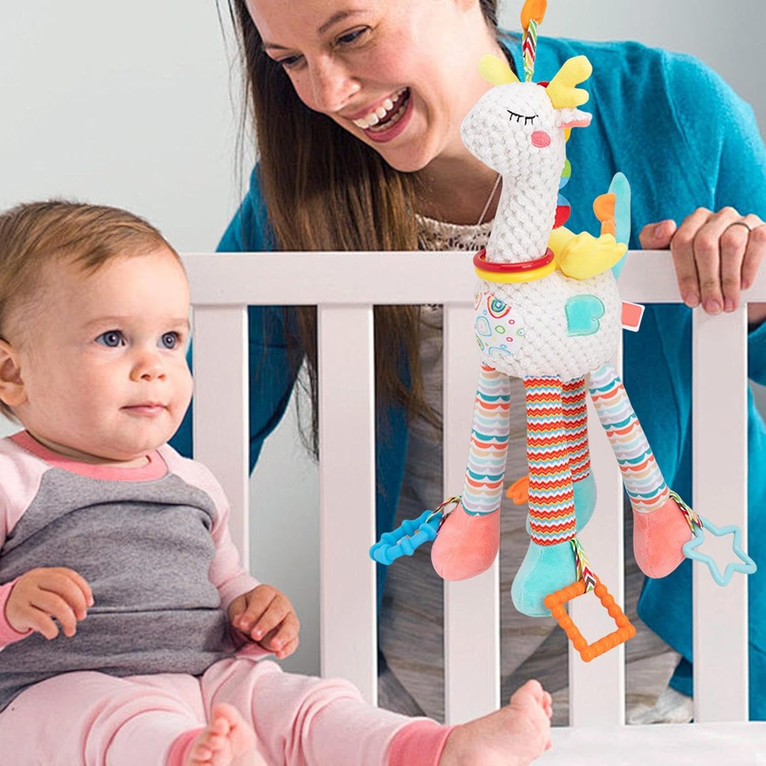 Montaggio Istantaneo: Compatibile con passeggini, seggiolini auto e lettini, garantisce un'installazione immediata e un intrattenimento rilassante continuo, adattandosi senza sforzo a varie configurazioni Opzione Perfetta: Ottimo regalo per occasioni speciali, delizia amici, e colleghi con il fascino di questi pratici giochi da passeggino, aggiungendo un tocco di premura per compleanni o festività Stimolante e Utile: Questo sonaglio per passeggino offre una rotazione continua a 360, muovendosi con il flusso d'aria per produrre suoni attraenti che contribuiscono a stimolare il uditivo e visivo del bambino, favorendo il coinvolgimento sensoriale nella prima infanzia. Conforto Emotivo: L'amabile bambola cervo cattura lo sguardo dei bebè e favorisce la grazie al suo piacevole design durante spostamenti e tragitti Design Sicuro: Combinazione di peluche premium e cotone PP garantisce comfort e resistenza per un divertimento prolungato con i giochi da passeggino