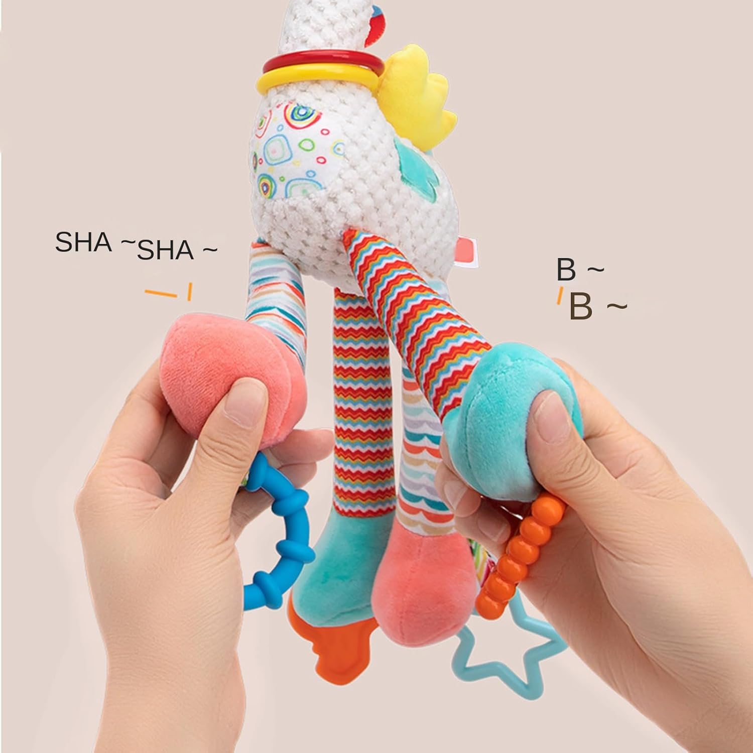 Montaggio Istantaneo: Compatibile con passeggini, seggiolini auto e lettini, garantisce un'installazione immediata e un intrattenimento rilassante continuo, adattandosi senza sforzo a varie configurazioni Scelta Piacevole: Ideale per feste e compleanni, questi giochi per passeggino portano gioia ad amici, e colleghi, rafforzando i legami attraverso momenti felici condivisi con un regalo divertente e adatto Funzionale e Educativo: Il design a rotazione completa permette al sonaglio da passeggino di girare delicatamente con la brezza, creando melodie che stimolano lo sviluppo uditivo e visivo del neonato, promuovendo l'esplorazione sensoriale durante l'attività ludica. Compagno Rassicurante: Il tenero giocattolo cervo stimola l'interesse dei favorendo la serenità per esperienze più tranquille in passeggino durante gli spostamenti Gioco Durevole: Tessiture morbide e resistenti ai morsi con peluche di alta qualità e cotone PP, assicurano affidabilità e utilizzo prolungato durante il di gioco