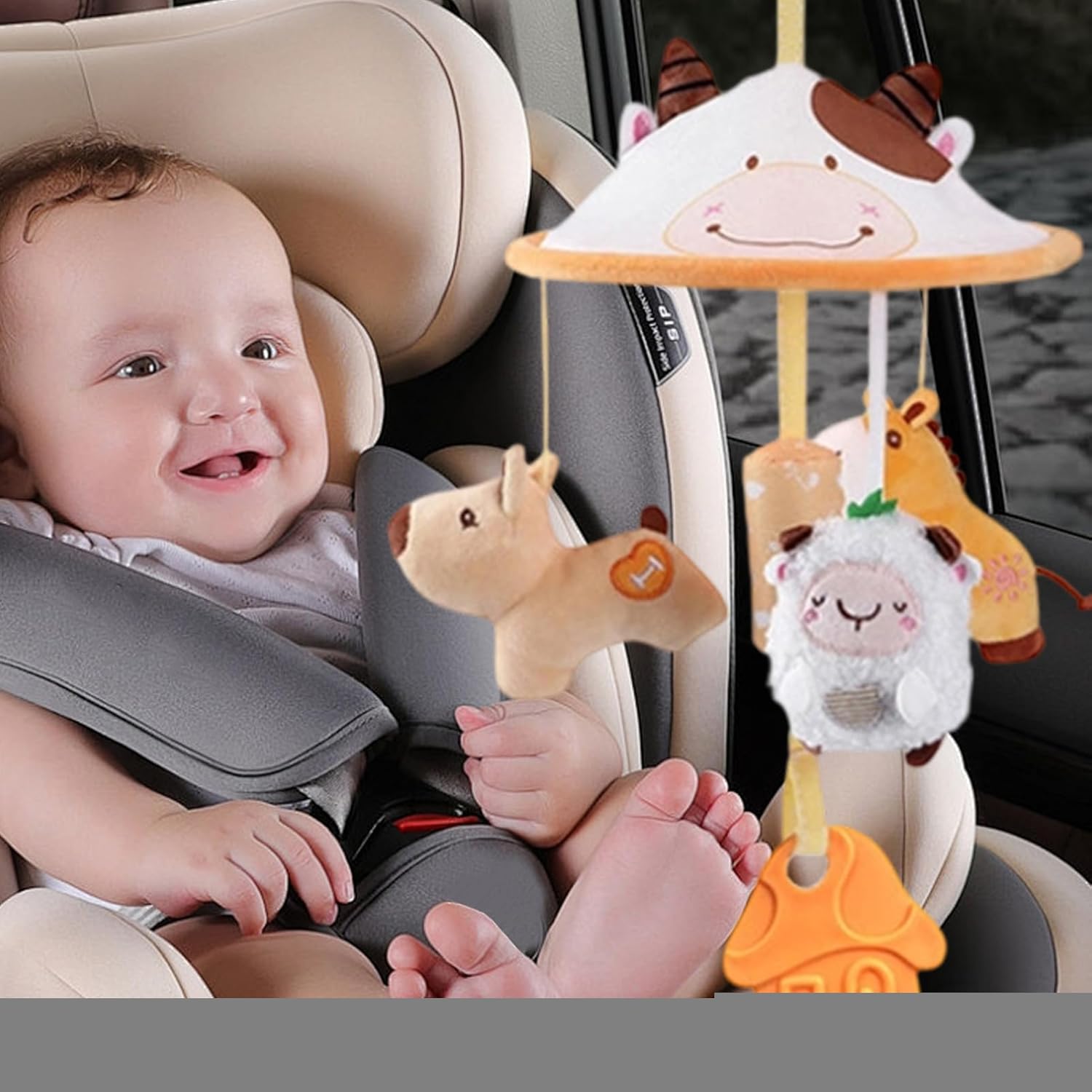 Design Stimolante: Risveglia curiosità con elementi animali, forme creative e dinamica struttura sospesa sotto l'ombrellino tematico Sviluppo sensoriale: Attiva le abilità percettive con componenti sospese vivaci e gamme cromatiche diversificate, sostenendo la coordinazione occhio-mano attraverso un formato di gioco interattivo. Compagno di Viaggio: Design vivace ispirato alla fattoria cattura l'attenzione del bambino, allevia lo stress da viaggio e favorisce momenti di complicità; la struttura con ombrello rotante stimola la curiosità incoraggiando l'esplorazione durante gli spostamenti. Emotiva: Promuove il rilassamento del bambino attraverso una sincronizzazione delicata di musica costantemente piacevole e coinvolgente studiata per l'engagement uditivo con suoni armoniosi Compatibilità Universale: Adatti a momenti domestici e in viaggio, si integrano perfettamente con passeggini e seggiolini grazie alla struttura ultraleggera e al di sospensione flessibile per un utilizzo intuitivo in ogni contesto