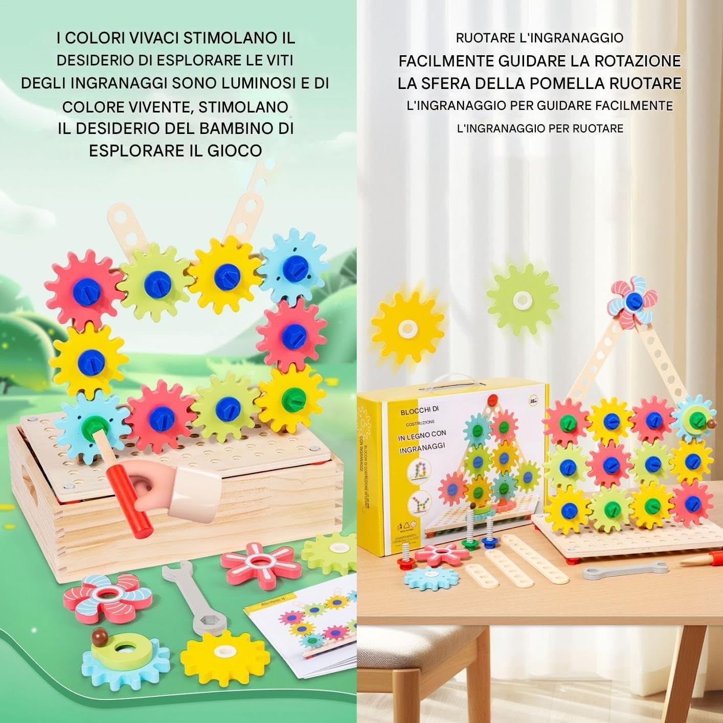 Gioco Cognitivo Pratico:Favorisce la consapevolezza spaziale e il pensiero logico con sfide basate sugli ingranaggi che migliorano i movimenti delle mani e le abilità cognitive in un formato educativo coinvolgente. Gioco Interattivo:Scopri combinazioni di ingranaggi con design sicuro, bordi lisci e elementi anti-sgancio. Materiali selezionati e colorazioni atossiche garantiscono un'esperienza protetta per i bambini. Abilità di Auto-Organizzazione: Promuove l'abitudine all'ordine attraverso un design strutturato che facilita la scoperta pratica del puzzle meccanico e semplifica il trasporto degli indispensabili con efficienza Abilità Spaziali: Partecipa all'allenamento di coordinamento sensoriale affinando le capacità di orientamento spaziale, raggiungendo movimenti mano-occhio precisi e attenzione prolungata grazie a complessità progressive degli ingranaggi Assemblaggio Libero Strutture: Favorisce creatività e ragionamento spaziale attraverso ingranaggi multi-misura combinabili liberamente e dadi sostituibili, stimolando interesse per le strutture meccaniche mentre sviluppa naturalmente abilità risolutive durante il gioco