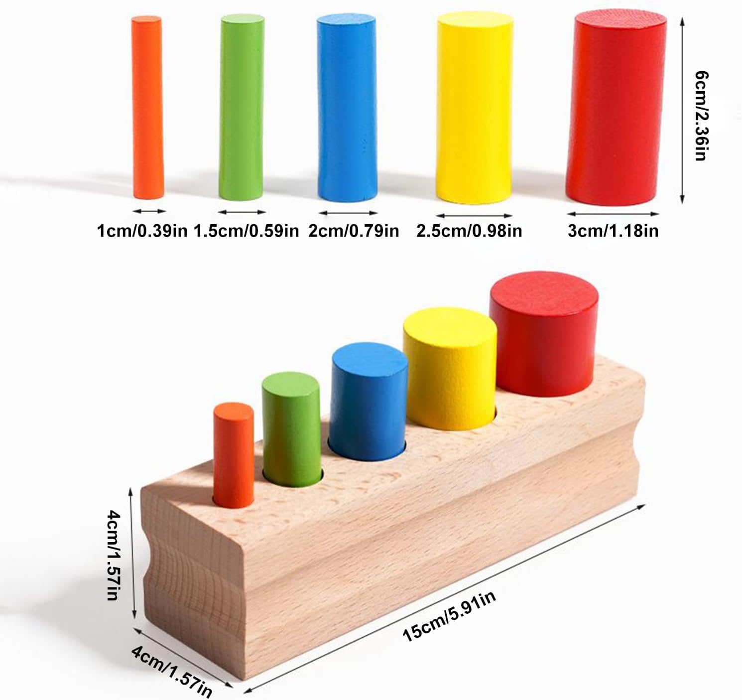 Apprendimento Precoce Geometrico: Il design cilindrico promuove lo sviluppo sensoriale e le capacità cognitive attraverso attività comparative coinvolgenti che ispirano l'esplorazione infantile Regalo di Qualità: Porta gioia a bambini e bambine in occasioni come compleanni, festività, Natale e Capodanno con giocattoli sensoriali in legno, realizzati per dimostrare affetto attraverso un design curato che stimola l'esplorazione tattile Migliora Abilità Cognitive: Sviluppa comprensione posizioni spaziali e concetti direzionali; affina sensibilità visiva con pezzi in legno vari che stimolano curiosità su dimensioni e spessore attraverso esperienza tattile coinvolgente Design resistente: Realizzati in pregiato legno di faggio, questi robusti giochi sensoriali in legno offrono elevata resistenza all'usura garantendo sicurezza durante il gioco e promuovendo lo sviluppo delle capacità tattili con una lunga durata nel Percezione Visiva: I cinque colori vivaci includendo rosso giallo blu verde e arancione migliorano l'identificazione cromatica potenziando le abilità di osservazione in modo divertente e interattivo per l'infanzia