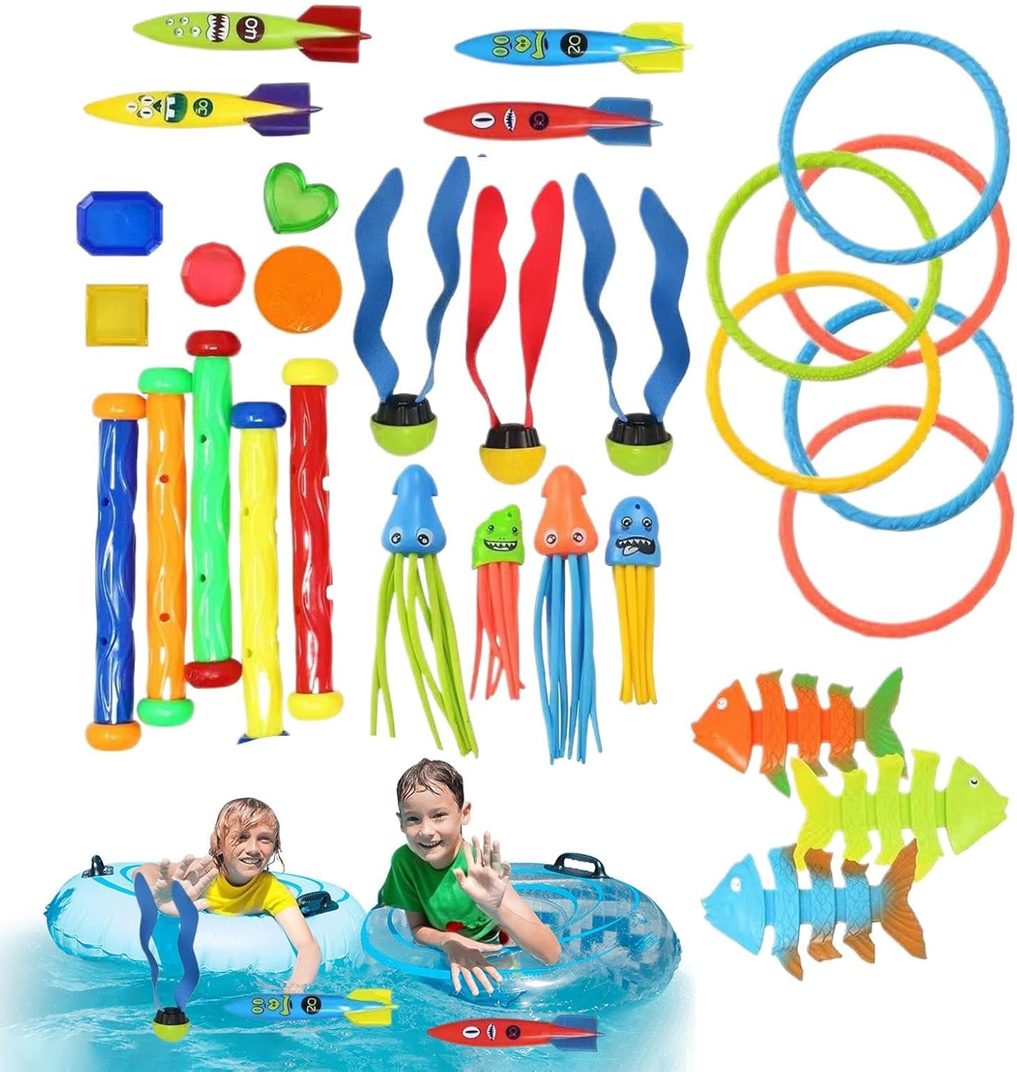 Set da 30 Pezzi Diversificati: Include vari giocattoli subacquei a tema marino che stimolano la scoperta attraverso la curiosità, offrendo giochi d'acqua multifunzione per divertimento infinito ed esplorazione durante le attività in piscina Giochi da piscina giocosi: Design marini ipnotici e dinamiche donano a questi giocattoli un mix unico di appeal visivo e coinvolgimento prolungato, rendendo ogni momento in acqua più gioioso e memorabile Coinvolgimento dinamico: Stimola l'interazione fisica e il divertimento con design resistenti e stabili per giochi acquatici, perfezionando le tecniche motorie e di recupero Attività Subacquee Interattive: ludico che trasforma la piscina in palestra relazionale, con percorsi di gioco modulari che richiedono coordinazione e sostegno reciproco, intensificando le connessioni emotive durante il divertimento Utilizzo versatile: Set di giochi subacquei con modalità di gioco diversificate che garantiscono divertimento prolungato grazie a componenti flessibili, ideale per piscine, spiagge o centri benessere per rinfrescare l'estate con attività coinvolgenti e versatili