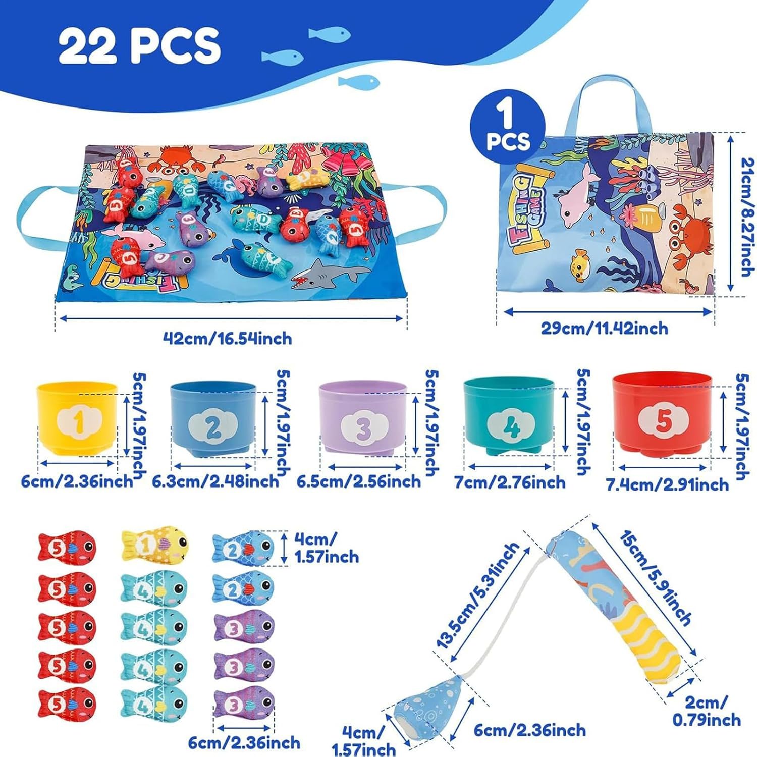 Gioco Interattivo Color Matching: Con caratteristiche innovative, questo gioco cromatico facilita il lavoro di tramite attività cooperative di conteggio e abbinamento colori, offrendo ore di intrattenimento mentre i bambini ordinano gli oggetti nei contenitori impilabili e utilizzano l'amo da portatile. Design Portatile e Pratico: La combinazione unica di portabilità, tappetino pieghevole e contenitore integrato rende questo giocattolo per conteggio e ordinamento una soluzione adattabile per uso interno ed esterno, favorendo l'apprendimento interattivo e riducendo il disordine grazie alla sua efficienza funzionale Sviluppo Logica Precoce: Il giocattolo per assortimento colori costruisce competenze logiche precoci con attività coinvolgenti di abbinamento numeri e colori, migliora lo sviluppo cognitivo naturale e potenzia la coordinazione occhio-mano durante il gioco di educativo, ideale per bambini che esplorano concetti base Costruttore Abilità Motorie: Supporta il ragionamento spaziale con sfide di abilità progressive in ambienti di gioco sicuri, promuovendo la crescita cognitiva e lo sviluppo di capacità fondamentali per piccoli apprendisti da 0 a 36 con esercizi appropriati Morbido e Sicuro: Realizzato in tessuto soffice, questo gioco di ordinamento colori offre un'esperienza sicura e delicata per il bambino, eliminando i rischi di soffocamento; progettato per resistere a ripetuti lavaggi, supporta il gioco nella fase di gattonamento e promuove l'apprendimento in diversi ambienti in modo duraturo e igienico.
