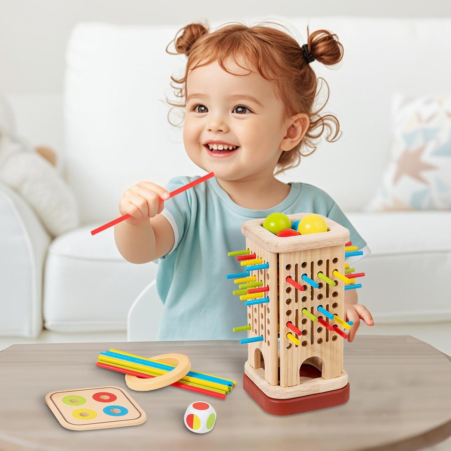 Superficie liscia e lucida: bastoncini di legno lucidato di alta qualità con bordi arrotondati garantiscono sicurezza e una piacevole esperienza di gioco, ideali per far divertire i bambini spensieratamente. Esperienza di gioco connessa: crea senza sforzo momenti condivisi per generazioni attraverso una combinazione armoniosa di apprendimento e divertimento, ideale per riunioni festive Precisione e concentrazione: sviluppa destrezza attraverso la regolazione precisa della forza e dell'angolo, affina il giudizio visivo e aumenta la precisione dei movimenti per un gioco abile Promuove abilità sociali: questo classico gioco di impilamento in legno per 2-4 partecipanti crea un ambiente familiare caldo attraverso modalità di gioco cooperative e competitive, rafforza le relazioni genitore-figlio e sviluppa abilità sociali essenziali nel gruppo Gioco di apprendimento dei colori: esperienza ludica ed educativa per identificare e abbina le tonalità lanciando emozionanti dadi e tirando strategicamente il bastone per creare una solida base per la comprensione estetica.