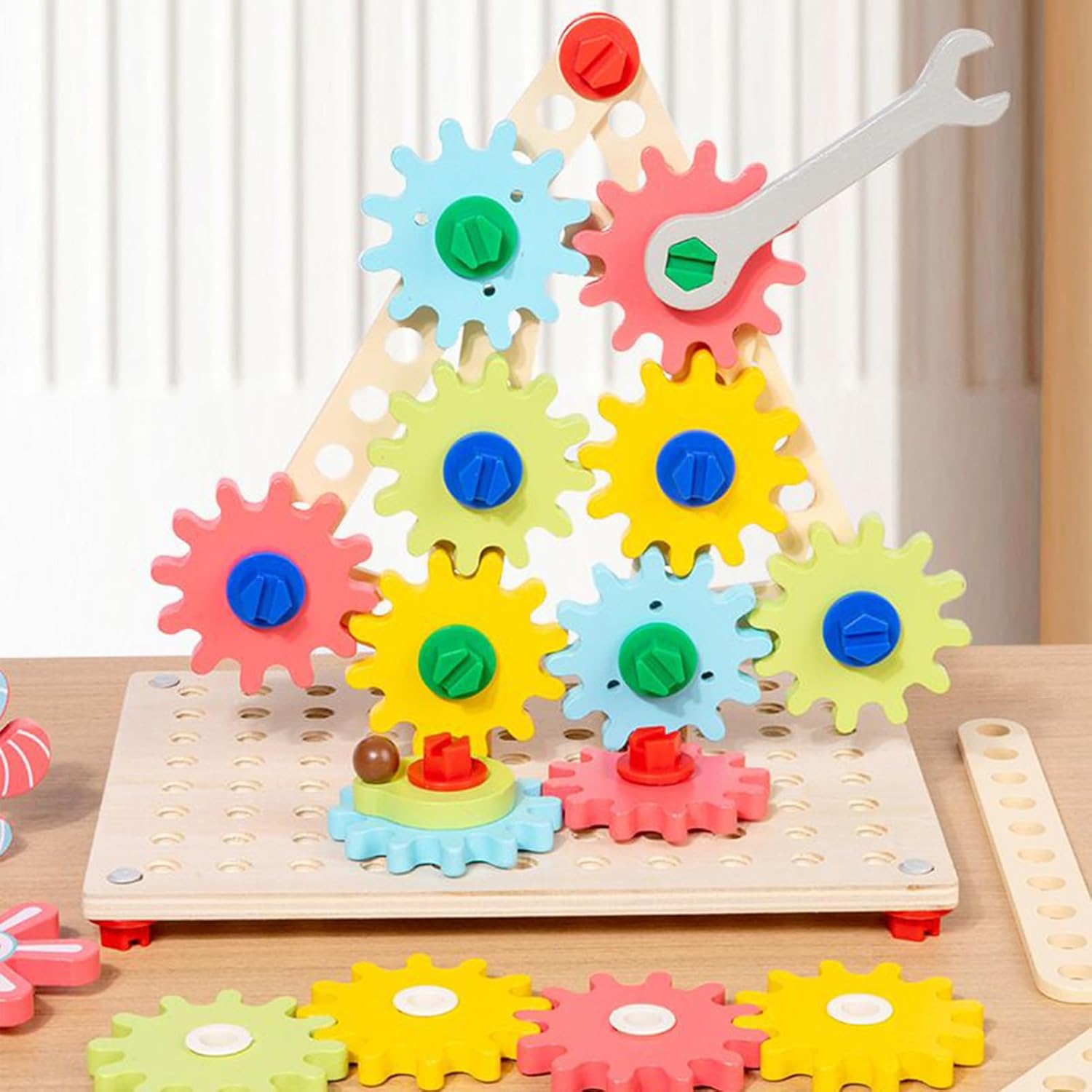 Strumento Apprendimento Multifunzionale:Supporta l'illuminazione prescolare combinando assemblaggio e rotazione degli ingranaggi per potenziare la consapevolezza spaziale, il pensiero logico e la coordinazione occhio-mano nei bambini piccoli. Montaggio Creativo:Immergiti in puzzle di ingranaggi con strutture lisce e arrotondate, dotate di funzioni anti-sgancio. Materiali adatti ai bambini e processi di colorazione sicuri stimolano l'apprendimento divertente. Scomparti Organizzati Funzionali: Potenzia l'esplorazione meccanica con scomparti progettati intelligentemente che favoriscono l'ordine, assicurando portabilità per tutte le esigenze del tuo gioco di ingranaggi puzzle Allenamento Coordinativo: Migliora la coordinazione precisa mano-occhio e la consapevolezza spaziale con ingranaggi progettati per l'allenamento sensoriale, supportando periodi di concentrazione prolungati tramite livelli di difficoltà regolabili per tutte le abilità Potenziamento Pensiero Creativo: L'uso di dadi interscambiabili e ingranaggi variati permette di accrescere l'immaginazione spaziale e suscitare interesse meccanico, promuovendo combinazioni flessibili e un approccio strutturato sviluppo creativo durante il gioco interattivo
