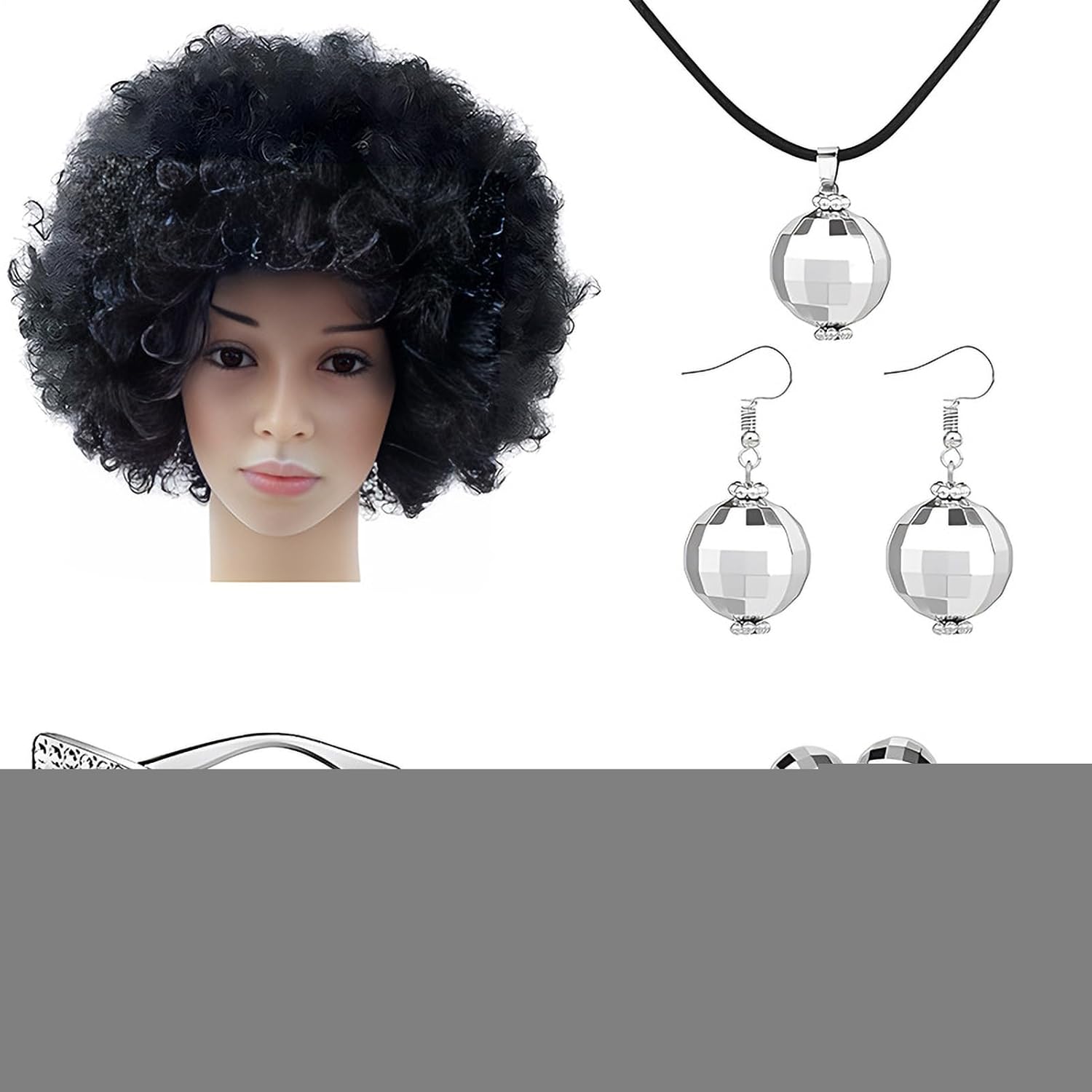 Generico Gioielli da discoteca per donna Set di da discoteca da donna degli anni '70 e '70 - Costume da rapper anni ' Set costume da per palla da | Collana, parrucca afro, orecchini, brac