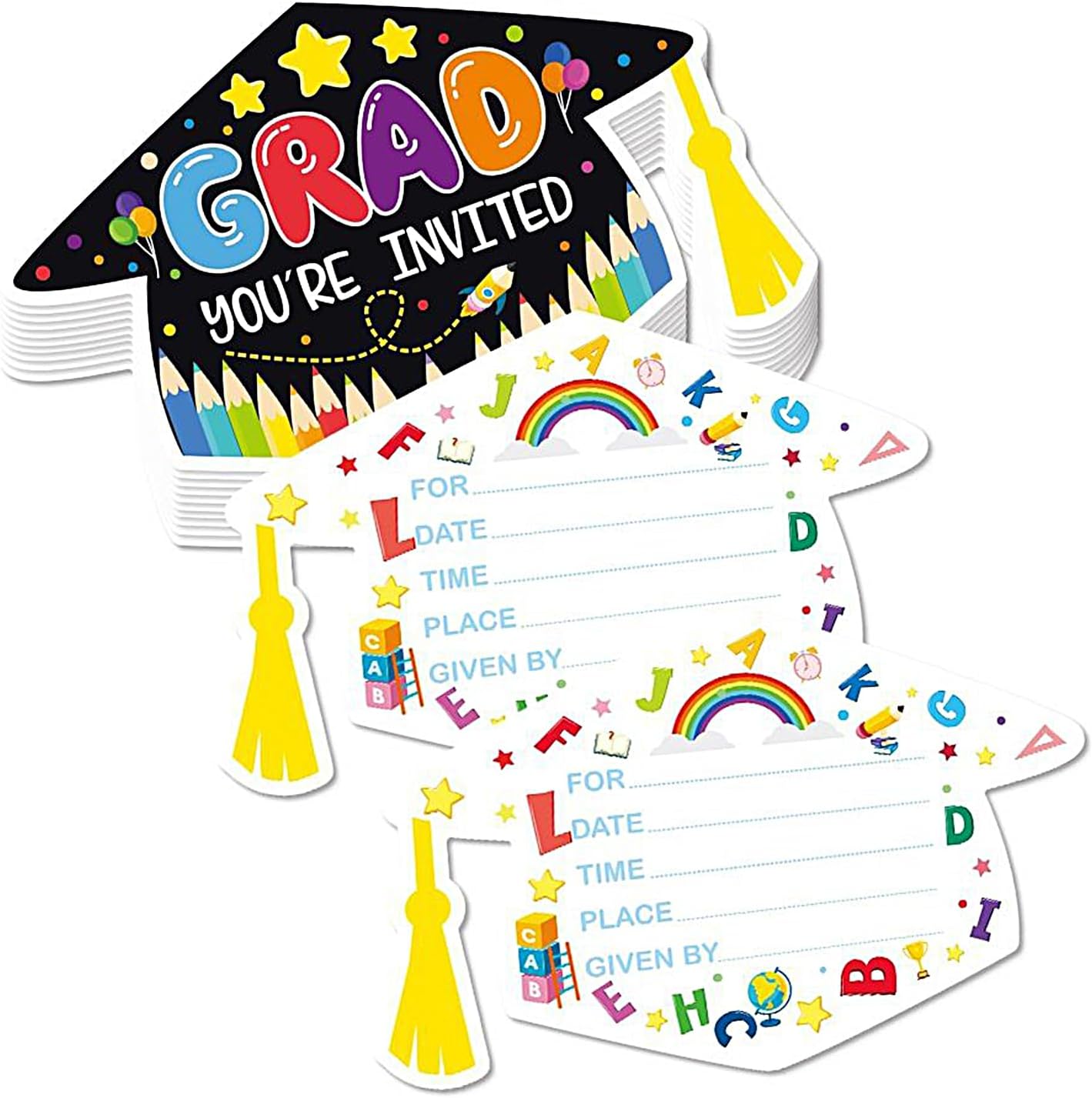Celebrate the special milestone with these graduation invites class of 2025, featuring an adorable hat shape design perfect for preschoolers and kindergarten graduates celebrating milestones in preschool, kindergarten, or elementary school. Each pack includes 24 pieces of vibrant preschool graduation invitations, providing enough for classmates, teachers, friends, and family event celebrations serve as greeting cards to mark the joyous occasion Crafted with sturdy material, these congratulation cards are ideal for school events, ceremonies, parties, and creating memorable graduation moments for young achievers Graduation invitations 2025 feature a hat-shaped design These hat shaped invitation cards feature blank spaces for you to personalize important details like event date, time, location, and personal notes for guests excitement of graduation through these creative designs Perfect for creating a festive atmosphere, these graduation announcement supplies are a wonderful addition to classroom parties, preschool , and family gatherings designed for memorable events 24X preschool