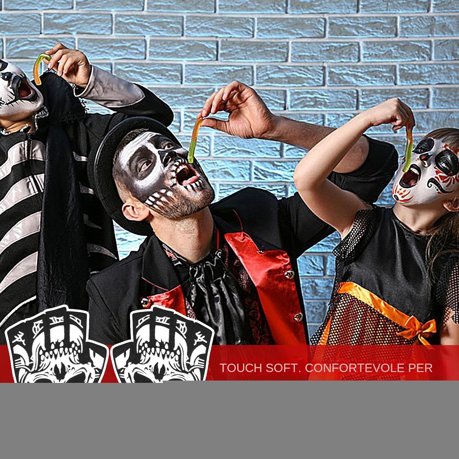 Presa macabra: realizzati con materiali di alta qualità, questi guanti da scheletro di Halloween offrono protezione e calore perfetti per le tue mani. Il design ergonomico garantisce una perfetta al palmo della mano, mentre la funzione mezzo non influirà sull'utilizzo del telefono Bagliore notturno: aggiungi un tocco inquietante al tuo costume di Halloween con i nostri guanti Skeleton che possono brillare al buio di notte, garantendo un'atmosfera spettrale. Grazie al meccanismo di assorbimento della luce diurna, sarai facilmente visibile al buio. per le feste festive Eccellente durata: realizzati con rinforzi extra, i guanti scheletro di Halloween sono progettati per durare stagione dopo stagione. La miscela di nylon e cotone offre una sensazione morbida e delicata sulla pelle, mantenendo le mani comode e calde Bellissimo regalo: aumenta il fattore paura questo Halloween con i nostri guanti da scheletro. Ideale per la amata: fidanzata, moglie, amica, sorella, figlia o figlio: come regalo inquietante e originale, per le feste di Halloween Ampiamente applicabile: fai colpo a qualsiasi festa di Halloween, mascherata, carnevale o Natale con questi irresistibili guanti da scheletro di Halloween, aggiungendo un tocco inquietante al tuo costume