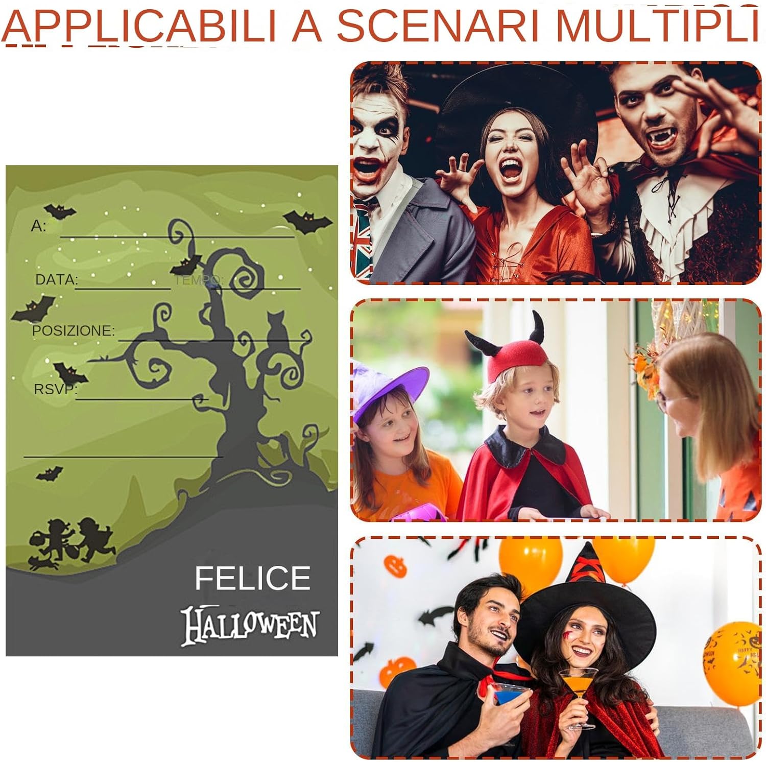 Comoda garanzia di scrittura: con i nostri inviti per feste di Halloween, ottieni una scrittura chiara senza sforzo. La carta spessa consente una scrittura facile e disegni complessi che sicuramente impressioneranno. Pianificazione semplice: incorpora perfettamente i dettagli personali negli inviti alla festa di Halloween; Sono progettati per consentirti di aggiungere rapidamente indirizzi, date e orari, quindi inviarli come cartoline eleganti. Value Pack: l'hosting è semplice con questo pacchetto di 10 fogli di invito per la festa di Halloween. La dimensione ideale di circa 10,5 x 15,5 cm e la quantità sufficiente garantiscono che siano perfetti per la spedizione o la consegna a mano, dandoti più per la preparazione. Halloween Extravaganza Catalyst: porta la tua festa di Halloween a un livello superiore con i nostri inviti che presentano il mix di zucche, fantasmi e pipistrelli. La combinazione di colori vivaci assicura che la tua celebrazione sarà memorabile per i tuoi ospiti. Uso versatile: perfetti per feste di compleanno di bambini o riunioni di adulti, questi inviti per feste a tema spettrale danno il a un'esperienza memorabile in una casa stregata, assicurando che il evento di Halloween sia un'indimenticabile festa della paura.
