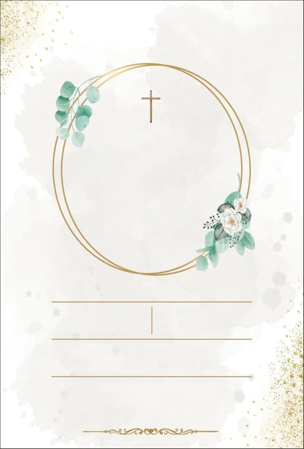 DESIGN ELEGANTE: Invito per Prima Comunione con delicati motivi floreali DETTAGLI EVENTO: personalizza con il tuo testo. FORMATO PROFESSIONALE: Layout strutturato con informazioni chiare e complete per tutti gli ospiti. STILE GRAFICO: Caratteri eleganti per il nome e i dettagli, con una disposizione armoniosa degli elementi