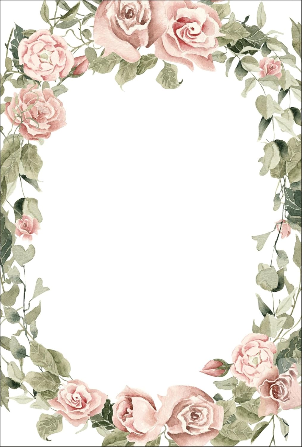 Generico Invito Prima Comunione, 20 pezzi o più, con busta, Disegno Rose Rosa, Bordo Verde