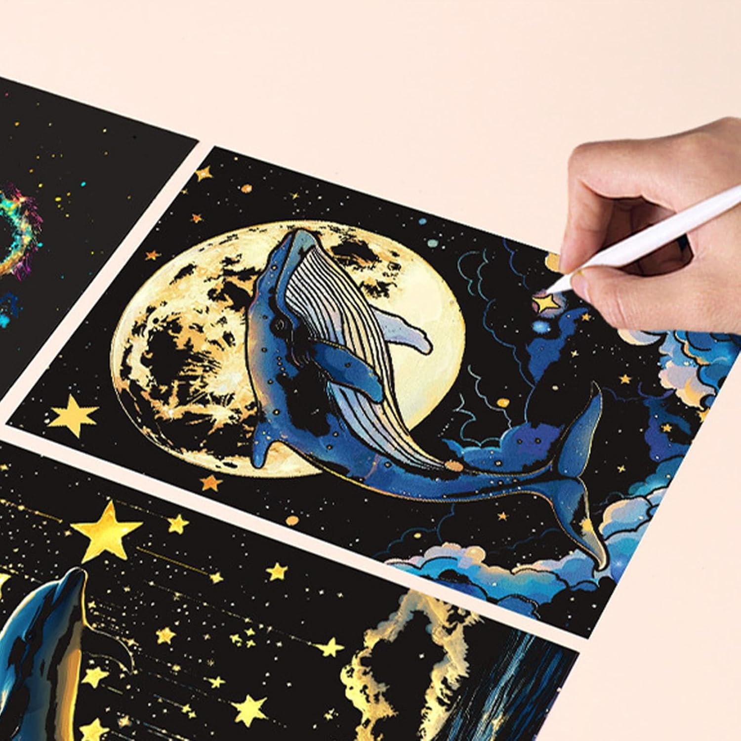 Complete Art Set for Kids & Adults: This Handmade Glitter Scratchboard Art Set includes 4 scratch papers featuring beautiful landscape and animal designs, perfect for both children and adults to enjoy creative coloring and drawing crafts. Safe & Fun Creative Craft: Made with high-quality, materials, this scratchboard art set is perfect for developing fine motor skills while keeping kids entertained. Ideal for fun family activities or as a solo crafting project for kids. Enhances Creativity & : The glitter scratchboard adds a fun, shimmering touch to your artwork. With graffiti-style cards, kids and adults alike can express their creativity, creating vibrant works of art by simply scratching off the black . Ideal for All Ages: Whether you’re a beginner or a seasoned artist, this set provides an easy, relaxing way to explore the world of . Great for men and women a creative hobby, or as a gift for kids of all ages. Perfect for Group Activities: Whether for classroom projects, birthday parties, or family gatherings, this set of 4 scratch papers encourages group creativity and fun. It’s an excellent way to introduce artistic expression to children and adults alike.