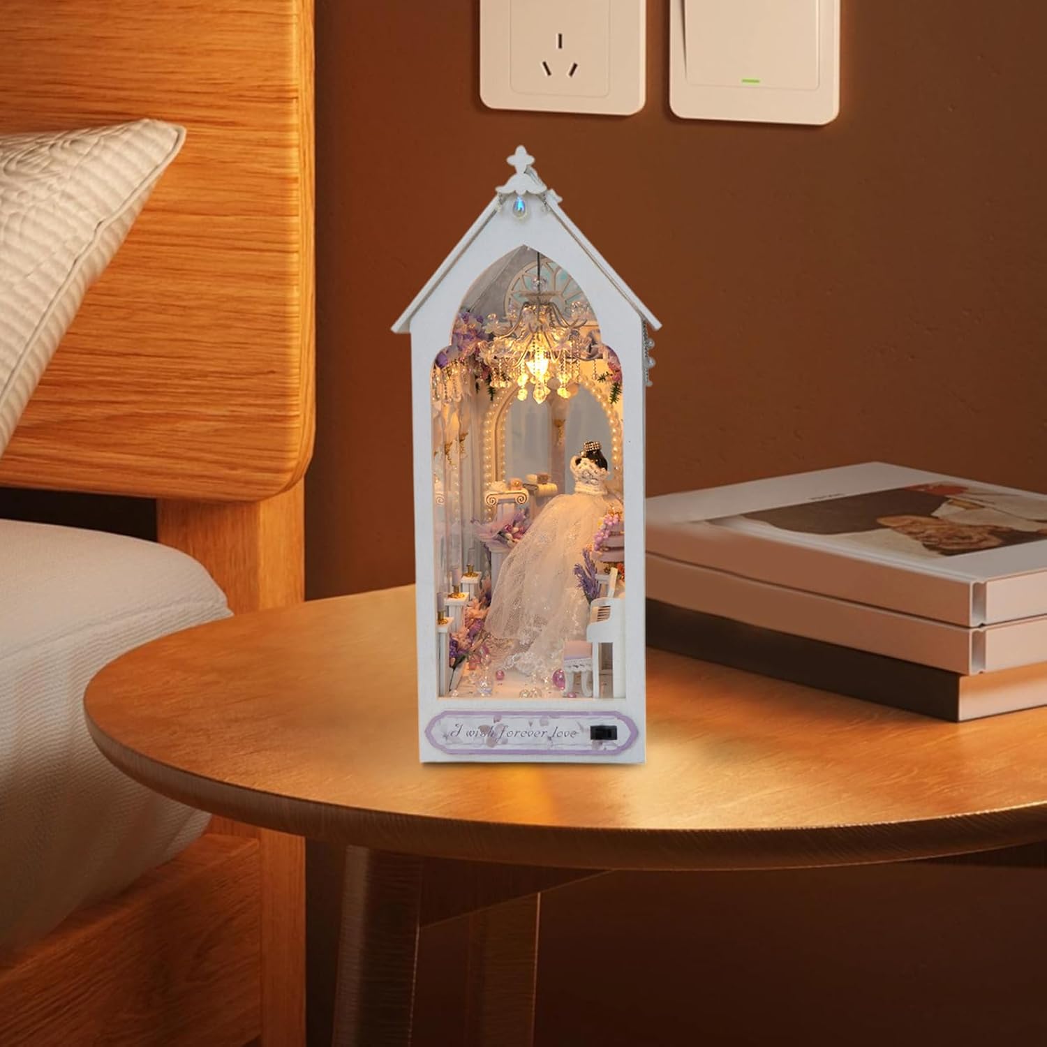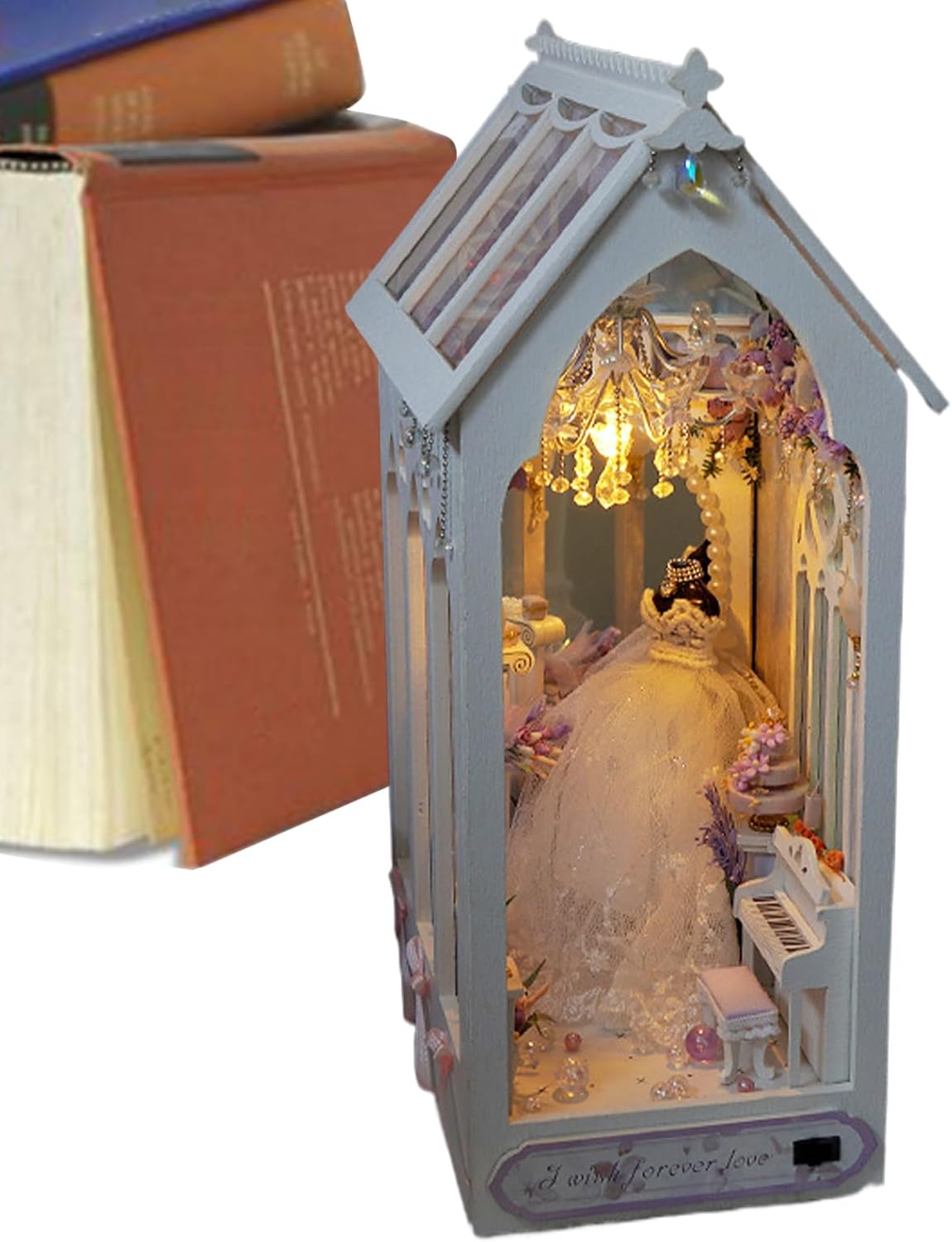 Atmosfera Romantica: Kit Book Nook con scena matrimonio in chiesa dal design raffinato crea un'atmosfera incantata, perfetta per arricchire librerie con un tocco magico e suggestivo. Carattere unico per decorare spazi con stile sofisticato e romanticismo senza . Regalo Prestigioso:la tradizione del dono con questo kit creativo, per compleanni, anniversari o scambi durante le feste. Sorprendi persone care o contatti professionali con un progetto pratico che fonde arredo per la casa e narrazione in un'esperienza coinvolgente. Illuminazione d'Atmosfera: Kit Book Nook con illuminazione LED integrata crea un'ambiente suggestivo per la libreria. La luce morbida esalta l'arredo sostituendo la monotonia dei classici porta libri con un design elegante Manuale Creativa: un momento rilassante con l'assemblaggio manuale, la pazienza si trasforma in risultato concreto costruendo metodicamente e personalizzando il tuo unico diorama a tema letterario passo dopo passo Accento Culturale: Unisce strutture architettoniche europee e motivi decorativi con sottili estetiche orientali, trasformando le librerie in pezzi d'arte culturale. L'armonia del design l'arredamento con artigianato di ispirazione continentale