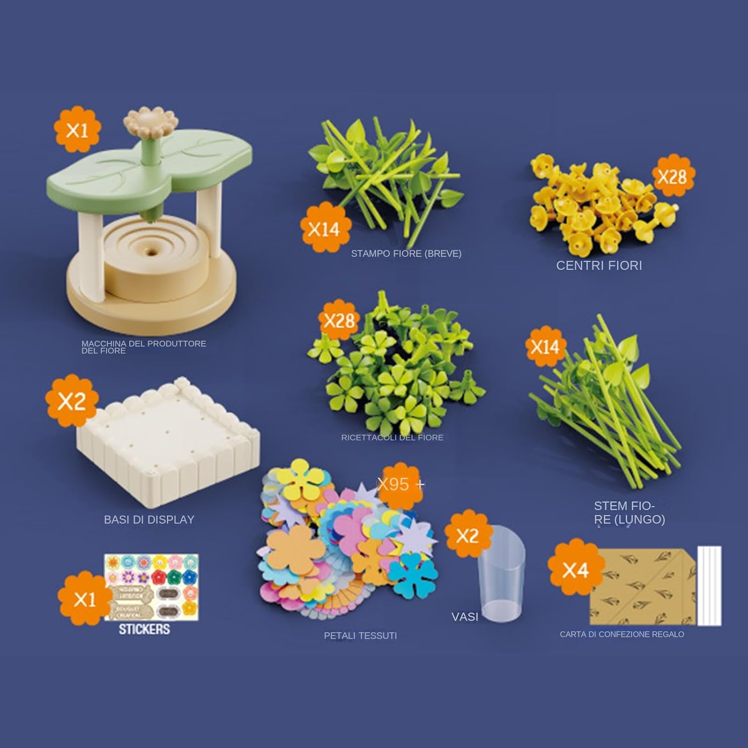 Processo Moderno: Parti pre-tagliate e sequenza chiara per assemblare rami floreali in modo immediato. Logica intuitiva garantisce risultati perfetti con minimo impegno. Strumento Flessibile: Materiale resistente garantisce lunga durata, con livelli di forma regolabili in ogni fase, ideale per creazioni floreali personalizzabili e riorganizzazioni frequenti. Potenziamento Capacità Manuali: Incentiva la coltivazione di abilità e migliora le capacità motorie fini unendo estetica artistica e creazione pratica, favorendo la concentrazione durante la realizzazione Regalo Eccellente: Rallegra i bambini con questo ottimo regalo, adatto a compleanni e stagioni festive. Promuove attività pratiche di creazione fiorita interattive che stimolano l'immaginazione e aggiungono entusiasmo alle celebrazioni. Combinazioni Colori Versatili: Supporta la creazione di bouquet unici offrendo molteplici combinazioni cromatiche, garantendo agli utenti di progettare con facilità composizioni floreali distintive grazie al set completo di strumenti per fiori fornito