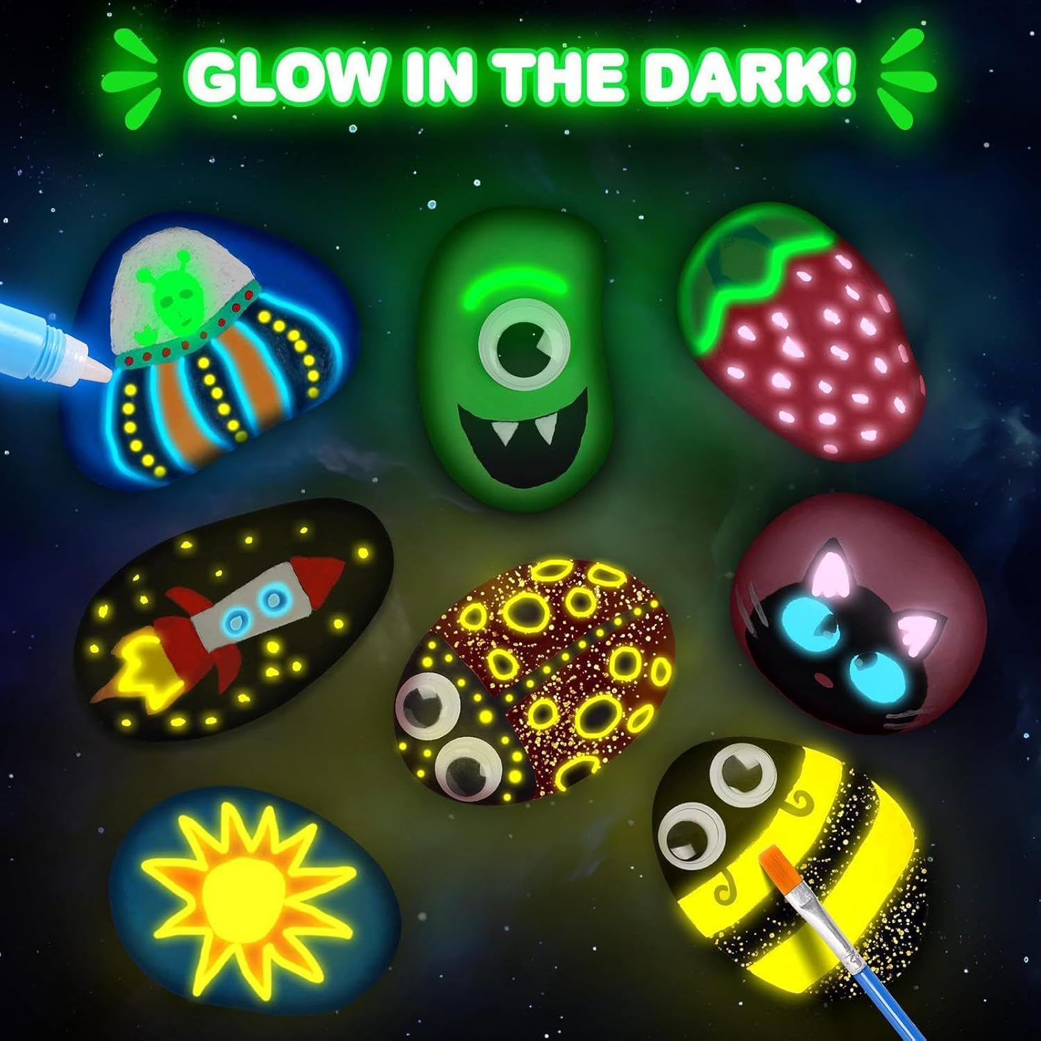Set creativo intuitivo: Corredato di pennelli e rocce per disegnare, sfumare e stratificare, permette di creare capolavori luminosi su rocce con esperienza artistica e immediata senza preparazioni Abilità Cognitive: L'attività con il kit di pittura su rocce favorisce l'attenzione e l'apprezzamento estetico, potenziando la creatività mediante la coordinazione dei colori e la consapevolezza spaziale, supportando l'illuminazione artistica con un'esperienza pratica su rocce 3D Esplorazione Creativa Pratica: Progettato con ergonomia, questo kit include pennelli con manici arrotondati e colori morbidi e facili da applicare, permettendo ai bambini di creare in autonomia sei anni in su, favorendo momenti artistici condivisi di qualità in modo pratico e supportivo Creatività Notturna Ispiratrice: Realizza disegni avvincenti con sassi dipinti e pigmenti fluorescenti incorporati che brillano al buio, offrendo un'esperienza artistica luce-ombra unica e stimolando la creatività notturna con infinite possibilità creative Difesa Colori Affidabile: Crea una barriera impermeabile che protegge dallo sbiadimento dei colori causato da acqua o pioggia, assicurando che i dipinti su roccia handmade conservino la loro vivacità attraverso una protezione continua e resistente nel