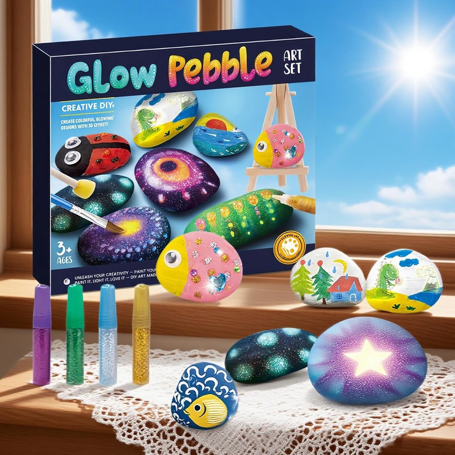 Divertente kit luminoso: Dotato di pennelli e rocce, offre un set completo per disegnare, sfumare e stratificare con colori glow in the dark, stimolando la creatività sin dal primo utilizzo grazie alla praticità immediata Creatività e Concentrazione: Incoraggia i bambini a sviluppare attenzione e occhio per l'estetica, affinando la coordinazione dei colori e la consapevolezza spaziale mentre stimola la creatività e favorisce la comprensione artistica attraverso la pittura su rocce tridimensionali reali Attività Artistiche Divertenti e Ispiratrici: I bambini possono creare in autonomia dai sei anni in su, utilizzando il kit per dipingere sassi con colori facili da stendere e pennelli dai manici arrotondati, promuovendo un'espressione artistica coinvolgente e adatta ai più piccoli in modo divertente e sicuro Display Artistico Luce-Ombra: Goditi creazioni luminose con pigmenti fluorescenti innovativi, perfetti per far risplendere i sassi dipinti di notte, creare cieli stellati incantevoli e mostrare arte luce-ombra di grande effetto con facilità Protezione Colori Vivaci: Forma scudo impermeabile che previene la perdita di colore a contatto con acqua o pioggia, mantenendo la brillantezza dei disegni su roccia fatti a mano e preservando il loro fascino originale grazie a una barriera idrofoba efficace e duratura
