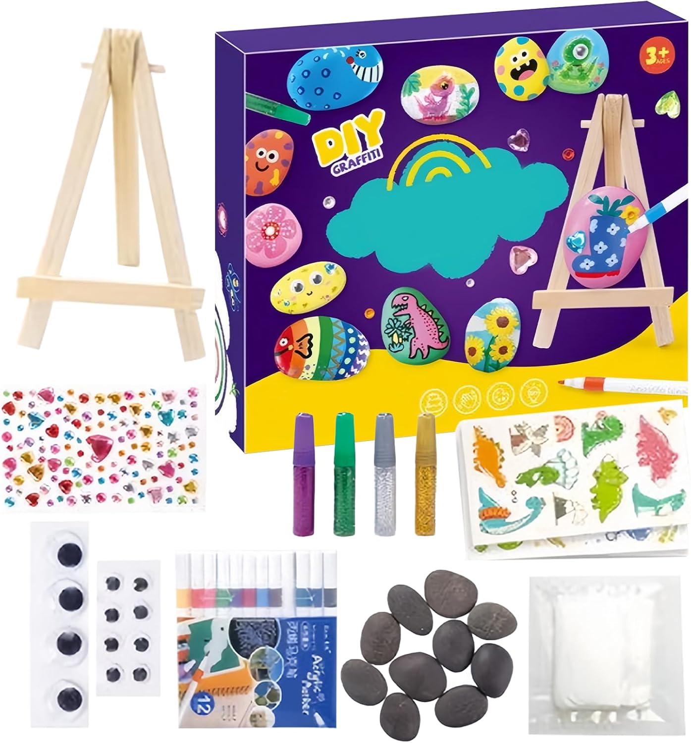 Set creativo intuitivo: Corredato di pennelli e rocce per disegnare, sfumare e stratificare, permette di creare capolavori luminosi su rocce con esperienza artistica e immediata senza preparazioni Espressione Artistica: Il kit promuove l'attenzione e coltiva l'apprezzamento estetico, aiutando i bambini a migliorare la coordinazione dei colori e la consapevolezza spaziale, potenziando la creatività e supportando lo sviluppo artistico attraverso la pittura su rocce tridimensionali Designo Ergonomico e Sicuro per Bambini: Condividi momenti artistici di qualità con colori facili da stendere e dalla texture morbida, pensati per bambini dai sei anni in su, garantendo un divertimento creativo indipendente, mentre i manici arrotondati dei pennelli offrono un'impugnatura confortevole per giovani artisti che esplorano la propria creatività in totale sicurezza e comodità al Buio Automaticamente: Questo kit per dipingere sassi al buio senza sforzo, grazie ai pigmenti fluorescenti integrati che cieli notturni vivaci e display artistici di luce e ombra con effetto luminoso immediato e affascinante per giochi creativi notturni Rivestimento Antisbiadimento: Garantisce una protezione colore di lunga durata formando strato idrorepellente, resistente sbiadimento quando esposto a pioggia o acqua mantenendo i lavoretti manuali vividi e luminosi nel