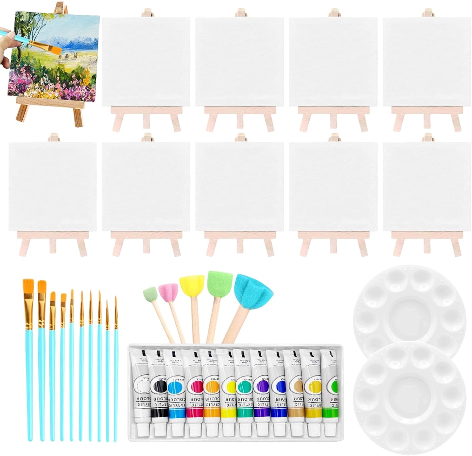 Colori Vivaci e Protetti: Set di vernici acriliche offre tonalità brillanti con formula sicura per bambini, assicura facile pulizia ad acqua per attività artistiche pratiche Apprendimento Creativo: Set pittura su tela che incoraggia creatività ed espressione immaginativa, migliorando le capacità motorie con attività didattiche divertenti adatte a età 3+, favorendo una crescita artistica naturale. Intrattenimento Artistico: Set ideale per creazioni murali e laboratori familiari, regala esperienze creative uniche e si trasforma in un pensiero speciale per persone care amanti 'arte Compagno Artistico in Viaggio: Set tela e colori con design compatto e portatile, include custodia per trasporto organizzato e praticità all'aperto, ideale per sessioni creative ovunque durante viaggi o escursioni Set versatile: Dotato di 10 mini, cavalletto in legno e componenti necessari, questo kit pittorico completo sostiene il tuo percorso creativo con praticità