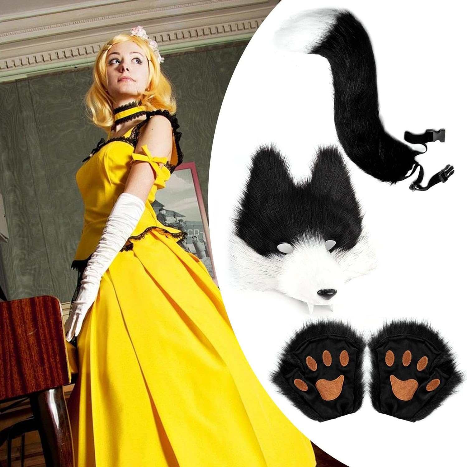 Descrizione prodotto Il set di coda e orecchie da è pensato per le donne che amano i costumi e gli ispirati agli animali. per eventi di cosplay, questo set migliora la rappresentazione del tuo personaggio con il suo design realistico. Ideale per Halloween, Natale, carnevale o feste in maschera, aggiunge un tocco attraente al tuo costume. La coda e le orecchie da sono realizzate per garantire comfort e stile, rendendole adatte per un uso prolungato durante celebrazioni a tema. Che tu stia partecipando a una festa in costume o a un evento festivo, questo set di dà vita ai tuoi look immaginativi soddisfacendo le esigenze degli appassionati creativi. Specifica: Materiale: pelle finta Dimensione del prodotto: Dimensione della coda: circa 50 cm/19,7 pollici Dimensione del coperchio del viso: circa 25x27cm/9.85x10.64 pollici Dimensione del guanto: circa 20x20 cm/7.88x7,88 pollici Peso: circa 340 g Lista imballaggio: 1 * coda 1 * Copertura del viso 1 * guanto Note: 1. A causa degli effetti di illuminazione e degli angoli di fotografia, c'è una differenza di colore nel prodotto. Si prega di capire. 2. A causa della misurazione manuale, c'è una tolleranza nella dimensione del prodotto. Avviso di sicurezza Non applicabile
