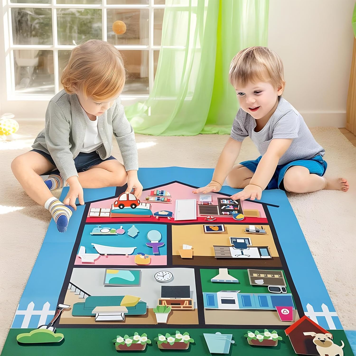 Regalo Ideale: Lavagna in feltro portatile che unisce educazione e intrattenimento, modo pratico per sviluppare creatività e capacità narrative attraverso il gioco, ottima idea regalo per compleanni e festività con oltre 60 personaggi riposizionabili Risorsa Educativa Creativa: Tavola didattica che ispira esplorazione attiva durante momenti didattici o di gioco. Funziona come supporto multifunzione per potenziare narrazione e apprendimento pratico in classe e a casa. Narrazione Interattiva: Coinvolge le giovani menti nella creazione di storie di stanze speciali, potenzia creatività e abilità motorie fini, offrendo spazio a giochi interattivi genitore-figlio ed esplorazione immaginativa. Robustezza Garantita: Design riutilizzabile in feltro robusto-morbido assicura prestazioni durature e flessibilità creativa per sessioni di formazione narrativa, ideale per uso intensivo Set Arredamento Creativo:Include 36 mobili e accessori decorativi che potenziano il gioco simbolico. Adatto per scenari dalla scrivania alla vasca da bagno, favorendo lo sviluppo cognitivo attraverso attività immersive.