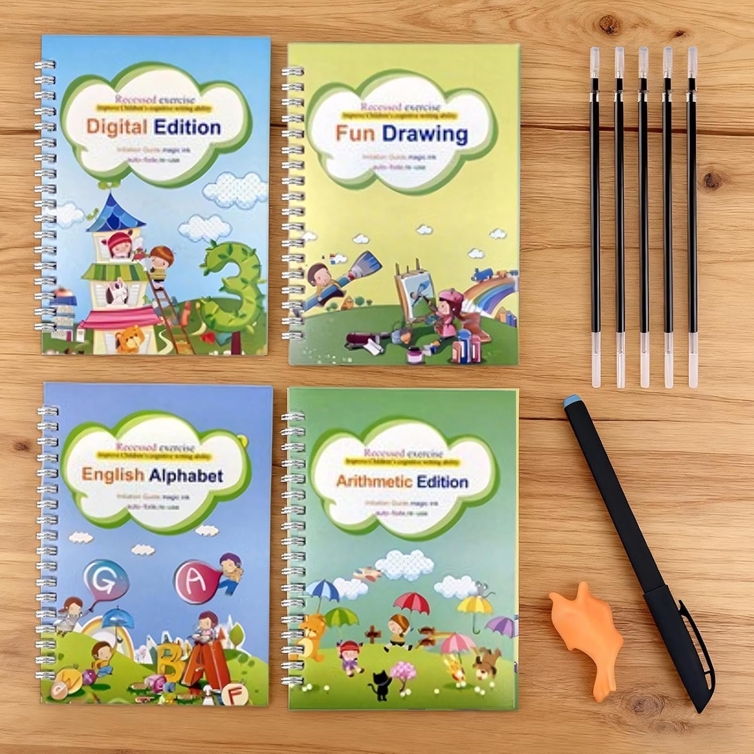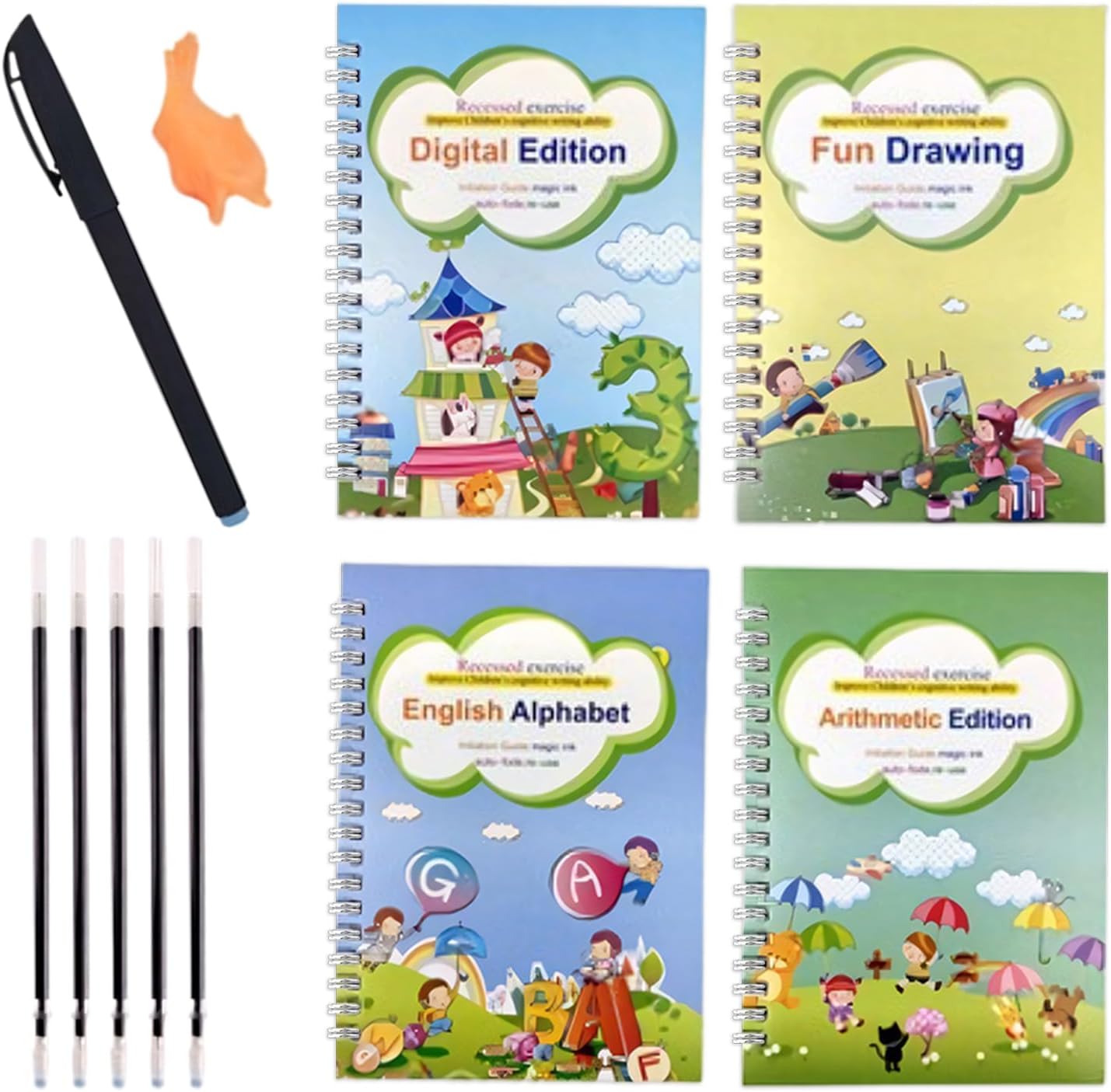Uso a Lungo Termine: Realizzato con bordi robusti ma delicati, privilegia la sicurezza senza compromettere la qualità, offrendo proprietà antimacchia e anti-strappo che assicurano durabilità per uso ripetuto, per esercizi di scrittura quotidiani e compiti scolastici coinvolgenti Selezione di Regalo Eccellente: Questo libro di scrittura scanalato guida i bambini a padroneggiare le corrette abilità calligrafiche, favorendo un'attività di concentrazione che aumenta la fiducia in se stessi, ideale come regalo educativo per feste e occasioni speciali Sviluppatore di Competenze Alfabetiche: Progettato come strumento esclusivamente inglese per l'alfabetizzazione, utilizza elementi illustrati per insegnare parole ad alta frequenza e lettere in caratteri standard, favorendo capacità di scrittura di base mantenendo i bambini motivati e divertiti durante lo studio o lezioni guidate Miglior Controllo Scrittura: I quaderni di scrittura per bambini con superfici scanalate offrono strumento di pratica cancellabile che guida la formazione e lettere, migliorando l'apprendimento calligrafico in modo divertente e coinvolgente, ideale per sviluppare creatività e concentrazione durante attività in classe o compiti a casa Sviluppo Abilità Progressive: I libri di scrittura con scanalature utilizzano un di training progressivo che aiuta i bambini a sviluppare la motricità fine e li alla scrittura strutturata dalla scuola 'infanzia, riducendo la deviazione a mano e migliorando la zione per ambienti educativi precoci