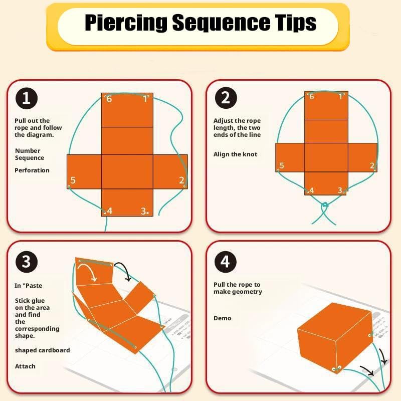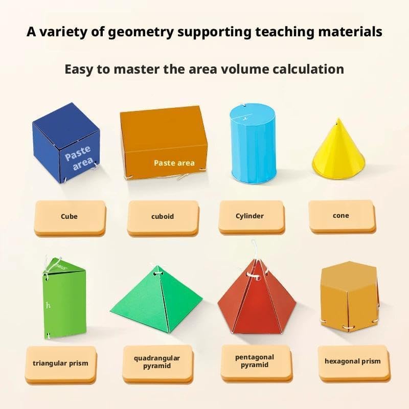 Illuminazione della geometria solida: 15 modelli solidi comuni (prismi triangolari, cubi, coni, ecc.) sono interattivi e consentono di comprendere intuitivamente le strutture geometriche, coltivando il pensiero spaziale e la logica matematica. Divertenti lavoretti fai da te: Contiene nastro biadesivo, che permette ai bambini di assemblare i modelli, migliorando la concentrazione e la creatività e rendendo la geometria astratta viva e coinvolgente. Padronanza sistematica della conoscenza: I modelli sono raggruppati per difficoltà (come cilindri di base, piramidi, poliedri, ecc.), consentendo un'introduzione graduale a concetti come volume e area superficiale, adatti a diverse fasce d'età. Sicuro e durevole: Realizzato in cartone spesso e con un robusto cordoncino in corda di cotone, il cordoncino offre bordi lisci e senza sbavature ed è resistente agli strappi, rendendolo più sicuro per i bambini che lo utilizzano in modo indipendente. Usi versatili: Può essere utilizzato come supporto didattico, giocattolo educativo o regalo di matematica, perfetto per l'educazione della prima infanzia a casa, come supplemento scolastico o come regalo per le feste, combinando praticità e senso del rituale.